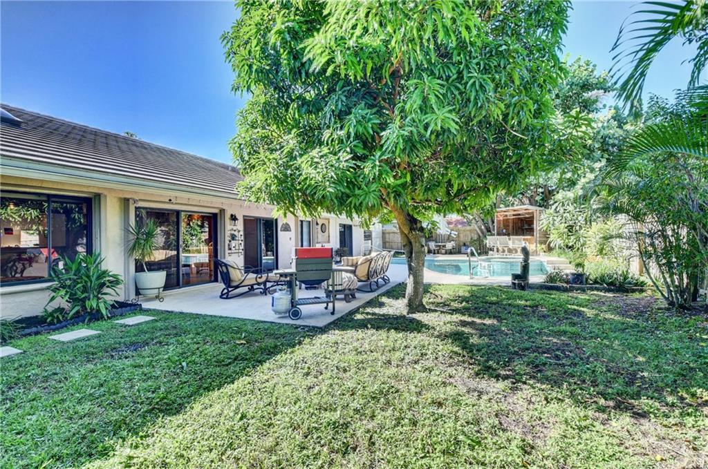 Spacious, spectacular 3 bedroom 2.5 bath home located in highly desirable Escondido-24/7 manned gated community, family-friendly neighborhood. This large home features an open floor plan with vaulted ceilings, updated kitchen, new quartz countertops, sink and appliances (2020). Large primary bedroom with large walk-in closet. Roof is 7 years old and A/C is 2 years old. Backyard features a spectacular pool w/Spa, luscious landscaping with mango trees and Banana trees; perfect for entertaining. Fully compliant hurricane shutters (cat 5) and 2 hurricane compliant sliders and hurricane compliant sky lights. Air-conditioned laundry, 2 car garage and A+ Schools. Close to Greenwise and Publix, 20 Minutes drive to beautiful beaches. Near desirable uptown Boca Raton