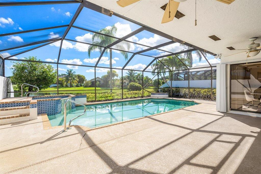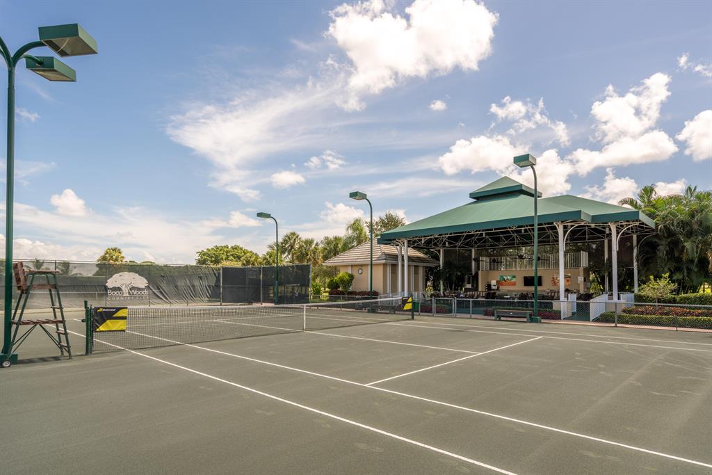 Spectacular WATER VIEW from this well maintained home with screened in pool and patio. Features of this 2 bedroom/2 bath split floor plan include a den/office that can easily be converted into a 3rd bedroom. Boca Woods is an all age Country Club Community which offers resort style amenities including two 18 hole championship golf courses, Har Tru tennis courts, pickleball, bocce ball, state of the art fitness center, spa, game room and fine dining. Mandatory Membership of $75,000 is due 10 days prior to closing. Annual dues is $17,430+ tax. A service charge of $107/month as BWCC is a non tipping club.