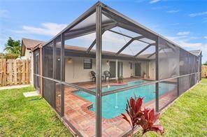 Beautiful 3 BR Welleby Pool home! Absolutly awesome custom kitchen with gorgeious cabinetry and granite counter tops. Huge Cooking/Dining Island with room for 5-6 barstools. Built-In Wine Cooler! Extensive custom lighting. Bonus built-in workshop/craft room inside garage. Tile and Laminate floors throughout. Dome screened pool with lots of patio space open and under room. Privacy fence. Large open green belt area behind home along the waterway.