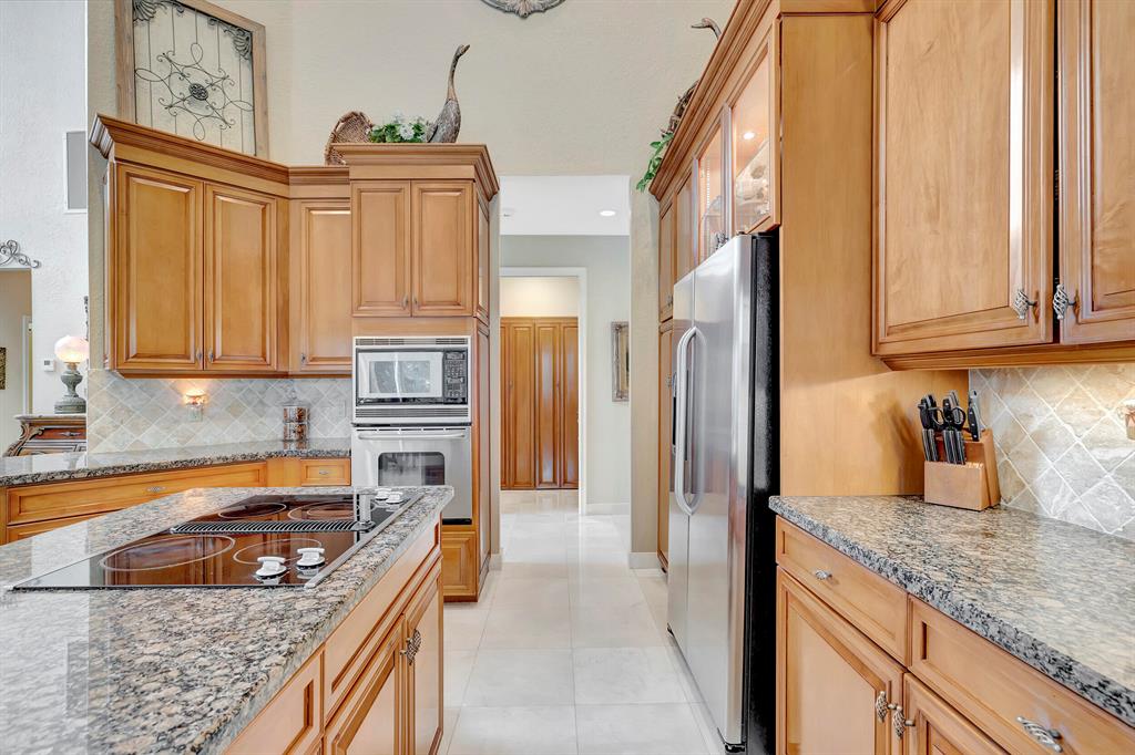 Elegantly designed Stonebridge home overlooking the beautiful golf course..This sprawling one story home has impact windows(on all but 3 windows). Grand living room welcomes you right away with soaring ceilings and open entertaining area.. The primary bedroom is separated from the rest of the bedroom to afford you and your guests the most privacy.. Enormous fitted closet has a place for everything.. Enjoy your own morning primp area away from the primary bathroom .. The kitchen has lots of wood cabinetry, granite counters and is open to the spacious family room . Lots of light, and a total enjoyment of back area from all the doors and windows looking out over the pool and golf course.. screened and open lanai to please everyone..