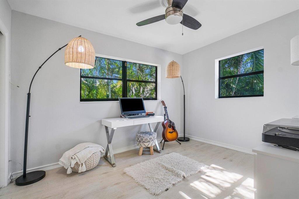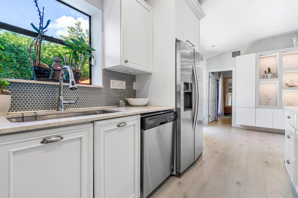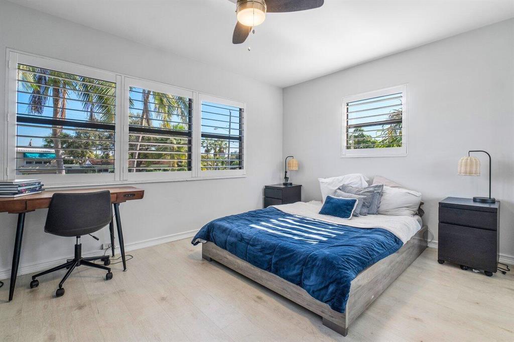 Located in the highly sought after East Boca neighborhood of the Golden Triangle!Walk to Mizner Park, Lake Wyman, 5th Ave Shops. Minutes to Intracoastal and 1 mile to the Beach. Steps away from Boca's finest restaurants, entertainment, and new Brightline Station. Just order your golf cart and enjoy your South Florida lifestyle.This pristine 4/3 pool home was renovated in 2021. Features open floor plan into kitchen with white quartzite countertops, and seated island. Wide plank light wood laminate floors throughout, custom lighting and custom built in wall unit . High volume ceilings, split floor plan : Master on main level with sliding glass doors out to the pool and deck, 2 bedrooms upstairs and the newly added 2nd Master featuring large walk in closet and full bath downstairs.