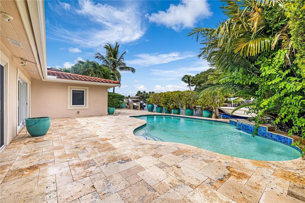 Live a dream life on Poinsettia Dr in E. Ft Lauderdale. This resort-style, ocean access, riverfront, pool home features a total of 4 beds 3 baths with a large open living room in a split floor plan. As a bonus, one bed & bath are in a rare, permitted, enclosed-garage, guest house. The separate entrance guest house includes its own TV room & kitchen. Perfect for visitors, in-laws, or potential rental income. This property boasts lush landscaping, large boat dock, Golden-brand boat lift, spacious main kitchen with Sub-Zero Refrigerator, Dacor oven & microwave, and Bosch dishwasher, Turkish marble floors throughout home and guest suite, granite counter tops, tumbled travertine pavers in front & back, irrigation system, updated electrical system, Impact PPG sliders/windows, & Euro Tech Doors.