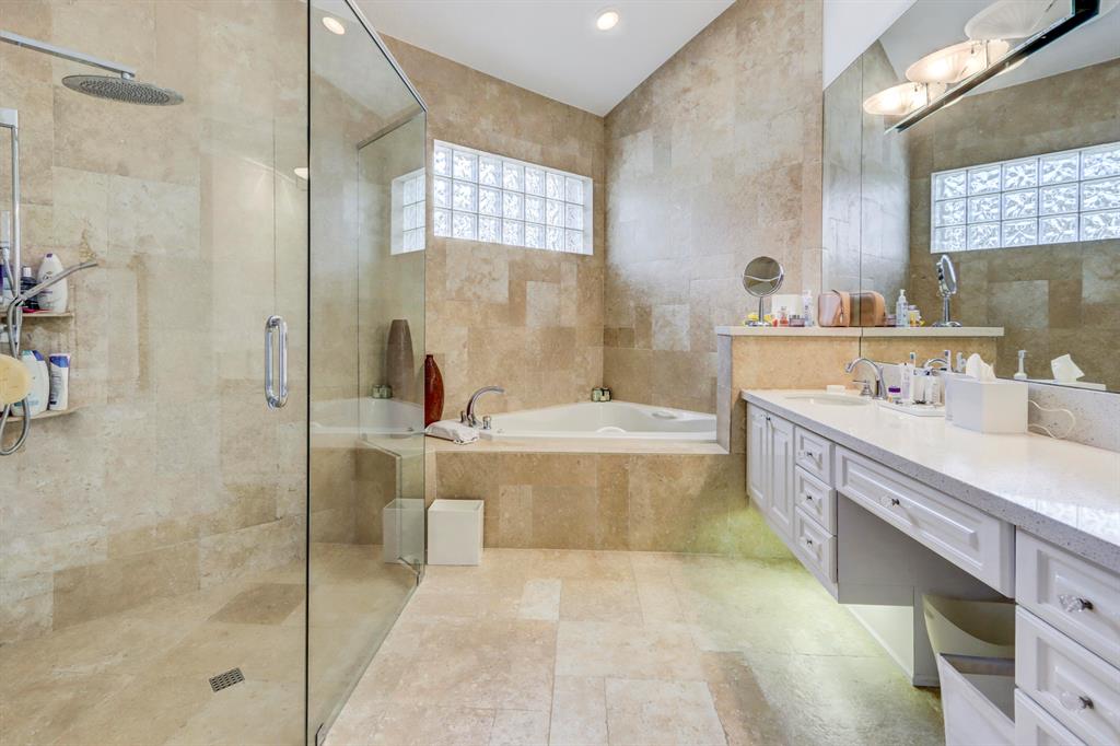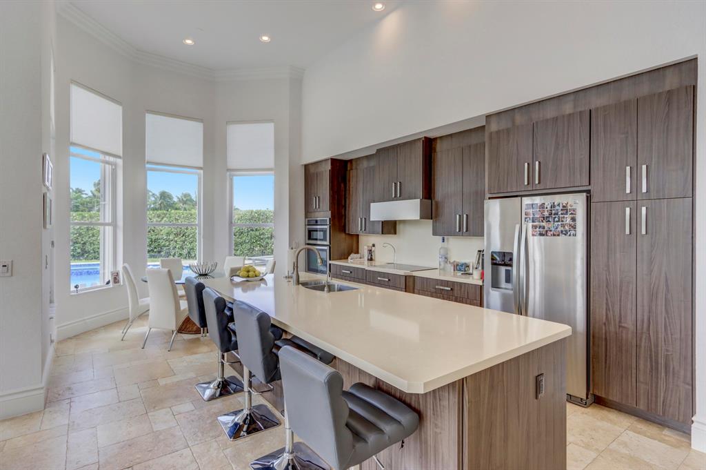 FABULOUS HUGE LAKE LOT! Offering tranquil lake views & tasteful contemporary renovations, this one-story home of 3 bedrooms & 3 baths offered furnished/turnkey is open & bright with plenty of windows. It features volume ceilings with crown moldings & extra high-hat lighting; Jerusalem marble floors with upgraded baseboards & neutral carpeting;custom closet design & window treatments. The Dining Room offers built-in shelves. The contemporary open island kitchen offers dark brown cabinetry & quartz countertops, stainless steel appliances & a lovely breakfast area overlooking the beautiful backyard. The bathrooms have been remodeled in contemporary design. The rear yard is spacious & pie-shaped offering an oversized heated pool with a spa & sun shelf and grassy area overlooking the lake!