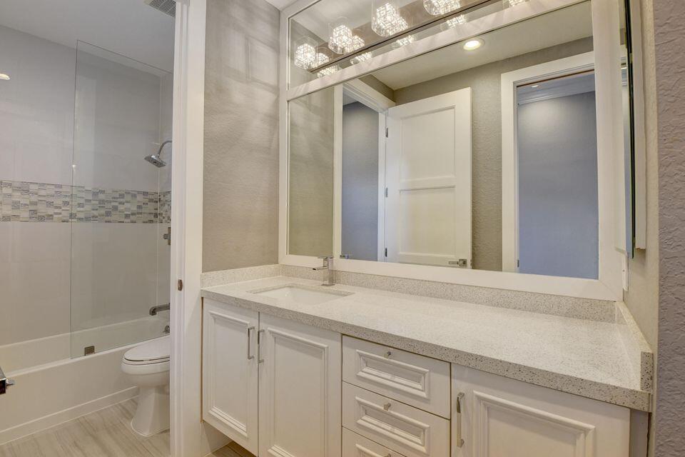 Tranquil golf course vistas fill this remodeled contemporary 1-story of 3 bedrooms + office & 2 1/2 baths. This exquisitely finished home features a wood & glass double door entry;volume ceilings with extra high-hats & crown moldings;beautiful white porcelain tile floors; elegant wall panel craftsmanship; a stunning gourmet island kitchen with white shaker-style cabinetry,Carrera marble countertops,marble backsplash & stainless steel appliances;built-in Family Room entertainment center;a fabulous wet bar with granite counter, stone backsplash & wine refrigerator;beautifully crafted office with built-in cabinetry,desk,Murphy bed & ceiling detail;remodeled contemporary Master & secondary baths;custom window treatment design & an inviting open patio with pool & spa overlooking the golf cours