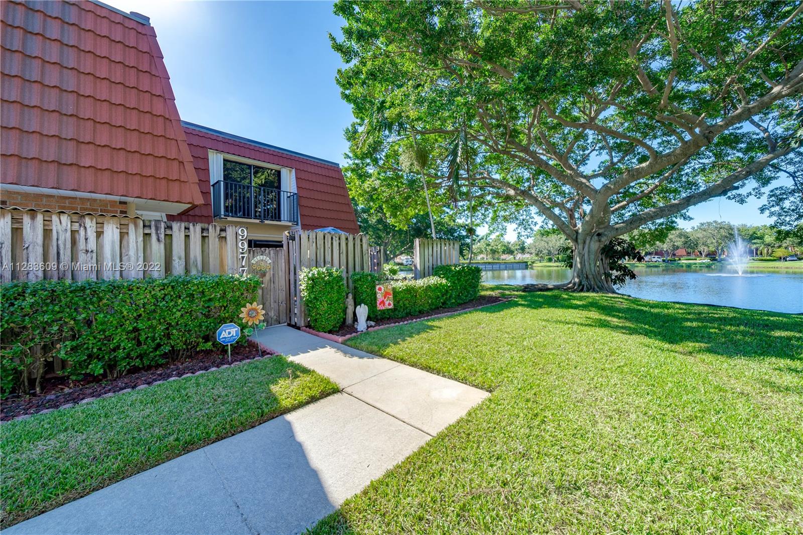 This is the water view you've been dreaming of! Fantastic townhome located in the heart of Plantation in Waterford Courtyards on one of the best water lots in the whole community! 2 bedrooms and 2.5 bathrooms impeccably maintained from top to bottom. Enter through your charming oversized courtyard with stunning water view. The downstairs features a large living space, kitchen, half bath and indoor laundry. Upstairs you will find 2 large bedrooms with ample closet space and 2 bathrooms. Roof is 16 years old and slated to be replaced by HOA in 2024-2025. AC is 4 years old and water heater is 2 years old. Community has a beautiful heated pool! Located moments away from a newly renovated Publix, Green Winn Dixie, plenty of restaurants and 595!