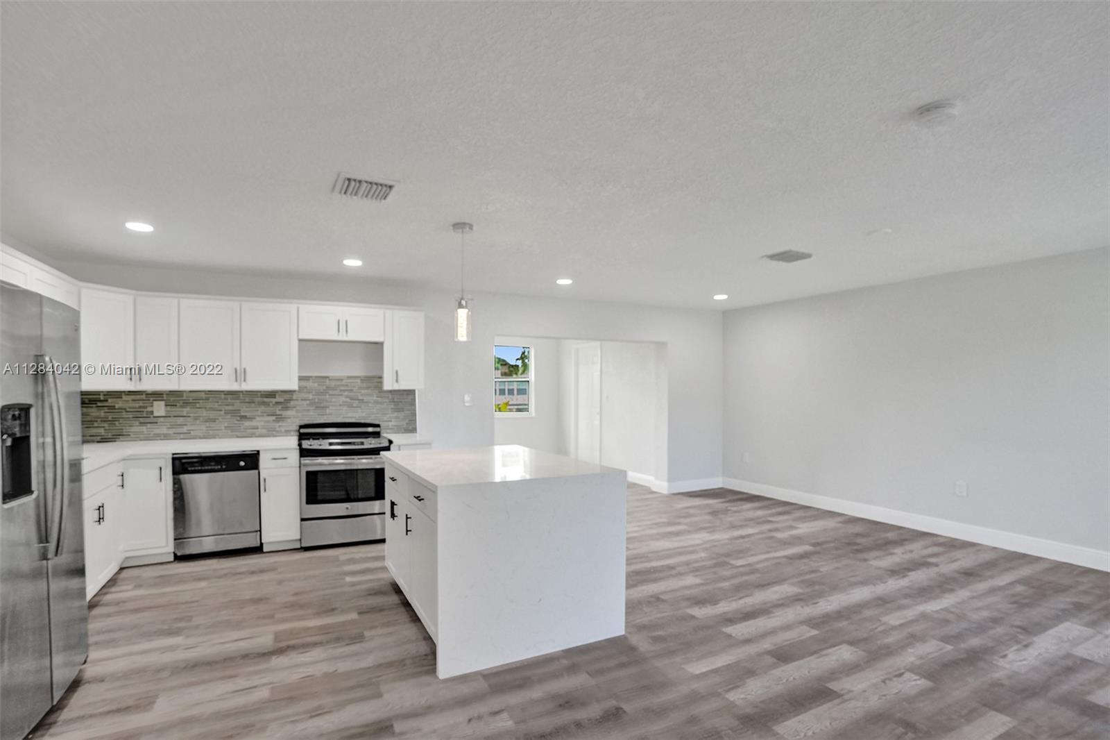 Beautifully renovated 4/2 waterfront home in Sunrise. The home is laid out with an open floor plan and bedrooms in three different wings. The modern white kitchen has stainless steel appliances and quartz countertops. Recessed lights, modern bathrooms and new flooring throughout all four bedrooms and the Florida room make this home impeccable. New roof, new electric, new piping. The spacious yard overlooks a calming canal. Make this renovated and affordable home your own! Easy to see ad FHA welcome.