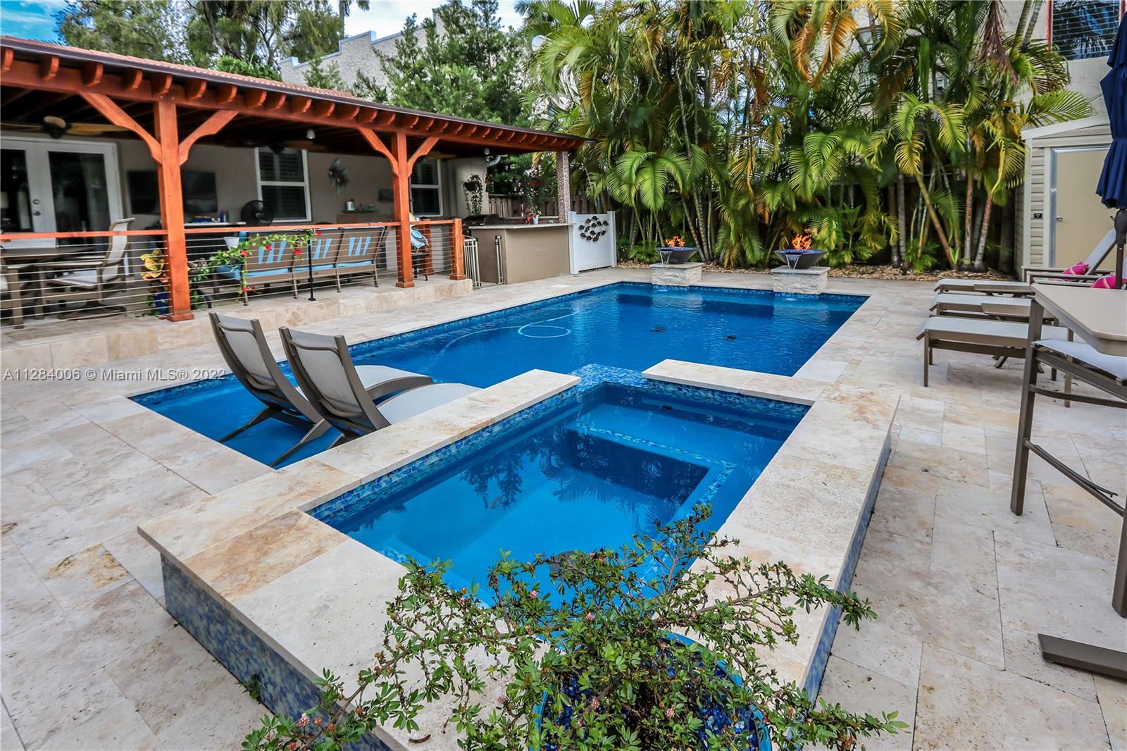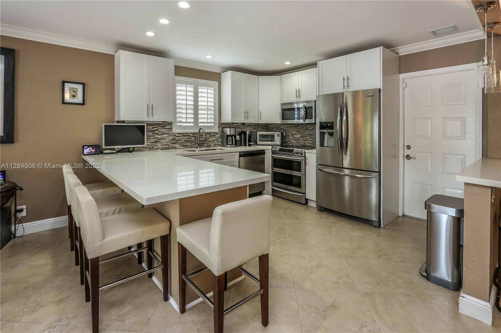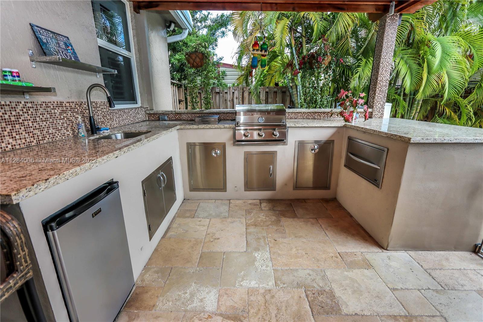 THIS 3 BED, 2 BATH HEATED SALTWATER POOL HOME W/ GARAGE IS OFFICIALLY AVAILABLE! ENJOY FLORIDA'S OUTDOORS W/ TROPICAL LANDSCAPING, FULLY EQUIPPED SUMMER KITCHEN W/ GRANITE COUNTERTOPS, SS APPLIANCES, BUILT IN BBQ, TUMBLR MARBLE PATIO, & NEW HEATED SALTWATER POOL W/ SPA. THE OPEN CONCEPT HOME OFFERS A WELL APPOINTED KITCHEN W/ WHITE CABINETRY, QUARTZ COUNTERTOPS, MOSAIC TILE BACKSPLASH, RECESSED LIGHTING, CUSTOM BUILT PANTRY & A SPACIOUS OWNER’S SUITE W/ UPDATED BATH THAT INCLUDES A STANDING SHOWER W/ A MOSAIC TILE FLOOR & RAIN SHOWER HEAD. THE 2ND BATH HAS A JACUZZI TUB/SHOWER COMBO, VANITY & LINEN CLOSET. ADD'L FEATURES INCLUDE PORCELAIN TILE FLOORING THROUGHOUT, PLANTATION SHUTTERS, IMPACT WINDOWS, CROWN MOLDING, BUILT IN CLOSETS, 1 CAR GARAGE W/ LAUNDRY, FENCED IN YARD, & STORAGE SHED.