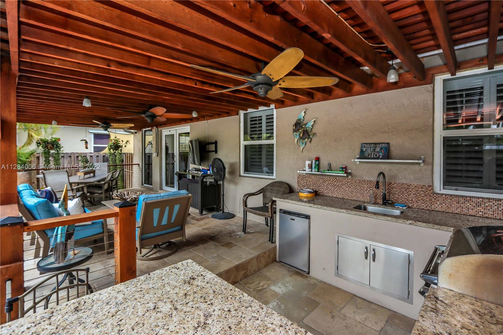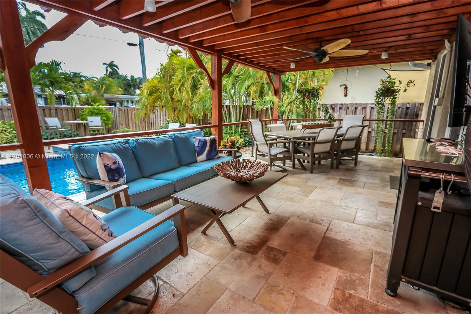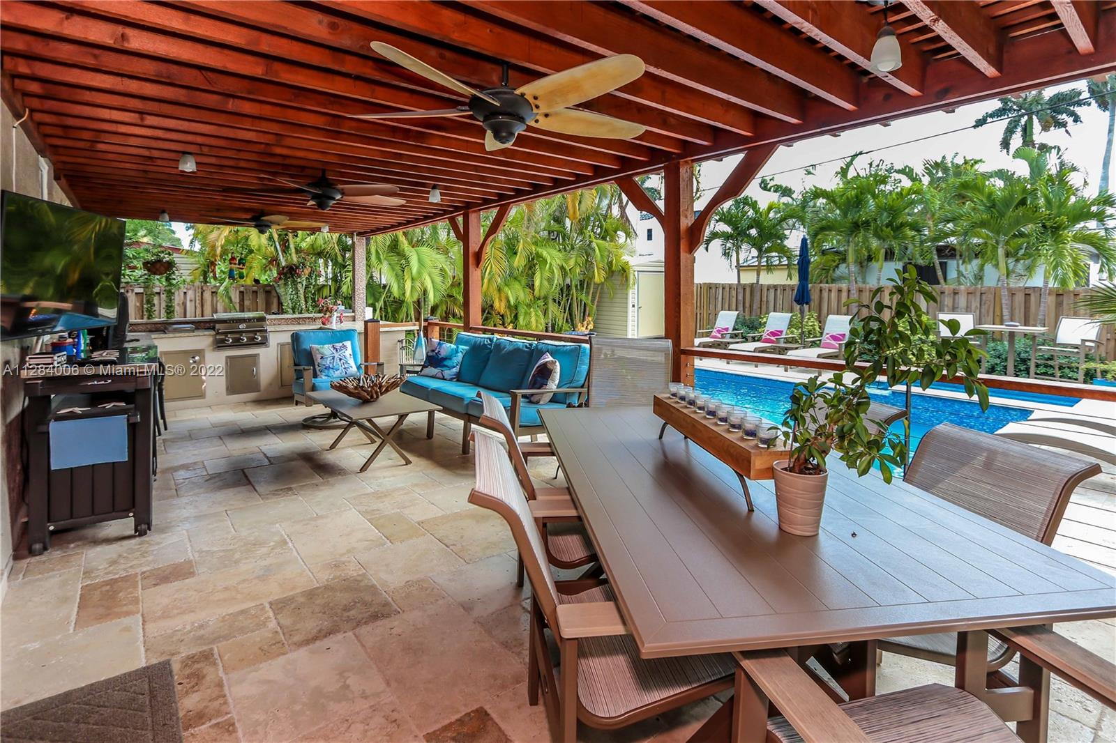 THIS 3 BED, 2 BATH HEATED SALTWATER POOL HOME W/ GARAGE IS OFFICIALLY AVAILABLE! ENJOY FLORIDA'S OUTDOORS W/ TROPICAL LANDSCAPING, FULLY EQUIPPED SUMMER KITCHEN W/ GRANITE COUNTERTOPS, SS APPLIANCES, BUILT IN BBQ, TUMBLR MARBLE PATIO, & NEW HEATED SALTWATER POOL W/ SPA. THE OPEN CONCEPT HOME OFFERS A WELL APPOINTED KITCHEN W/ WHITE CABINETRY, QUARTZ COUNTERTOPS, MOSAIC TILE BACKSPLASH, RECESSED LIGHTING, CUSTOM BUILT PANTRY & A SPACIOUS OWNER’S SUITE W/ UPDATED BATH THAT INCLUDES A STANDING SHOWER W/ A MOSAIC TILE FLOOR & RAIN SHOWER HEAD. THE 2ND BATH HAS A JACUZZI TUB/SHOWER COMBO, VANITY & LINEN CLOSET. ADD'L FEATURES INCLUDE PORCELAIN TILE FLOORING THROUGHOUT, PLANTATION SHUTTERS, IMPACT WINDOWS, CROWN MOLDING, BUILT IN CLOSETS, 1 CAR GARAGE W/ LAUNDRY, FENCED IN YARD, & STORAGE SHED.