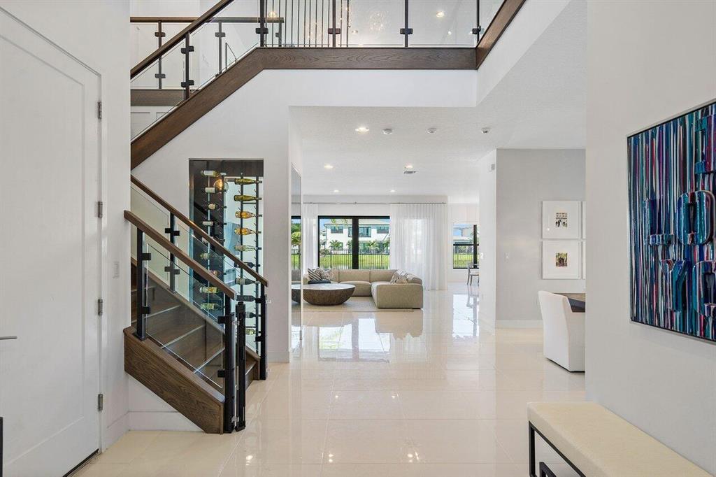 Award winning Lotus - Maldives contemporary home with 6 Bedrooms plus loft, game room,office and 2 generous Balconies overlooking the serene lake and oversized private yard. This new home features Impact glass, a whole house generator, garage space for 4 cars, a custom wine cellar,porcelain tile floors on the first floor and wood floors on the second level. Custom built ins, unique wall features, light fixtures and more. Oversized heated saltwater pool accompanied by landscape architect design and room for outdoor play or entertaining. This home is professionally finished and shows like a model. Enjoy the amazing Country Club like amenities at the Lotus Clubhouse. Featuring pickelball, tennis, indoor/outdoor basketball, splash pad, cafe and more.