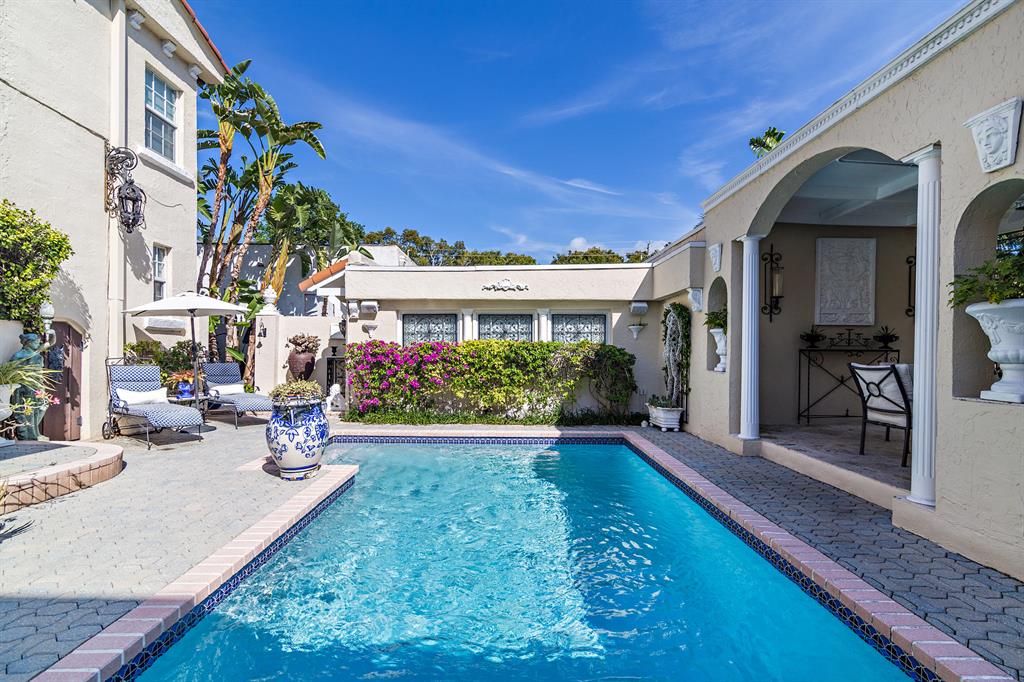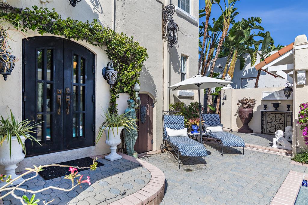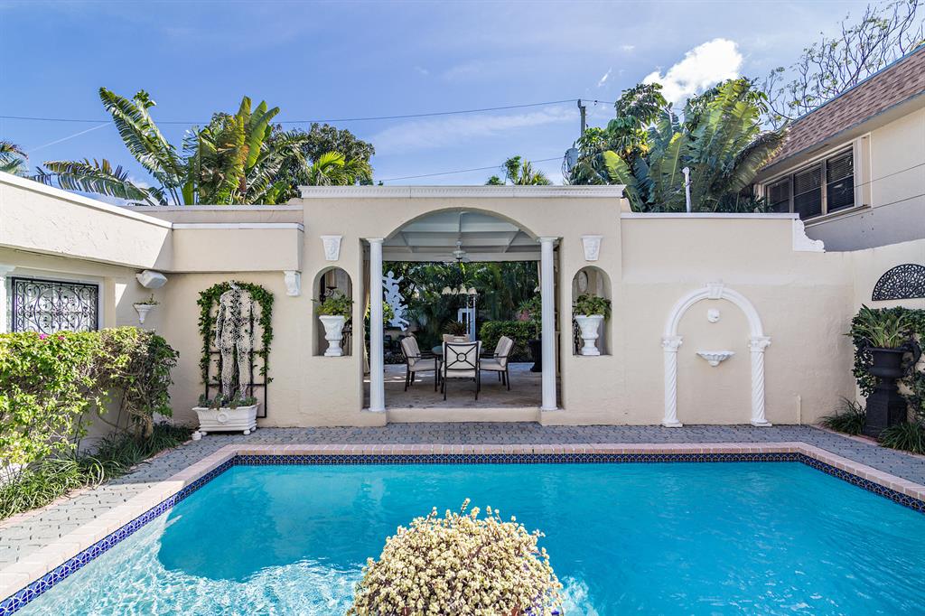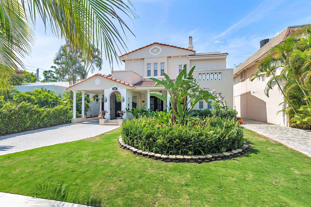 This tastefully renovated 1925 Spanish style Flamingo Park residence epitomizes elegance and classical style offering a 2-bedroom 1.5 bath house, a 1 bedroom 1 bath guest house and pool. The downstairs living spaces offer period architecture and easy traffic flow for entertaining. The large living room offers high ceilings, a fireplace, travertine flooring and impact French doors that lead to the pool area. The updated eat-in kitchen off the formal dining room offers a gas stove, granite counters and an updated half bathroom. The second-floor master suite offers wood flooring and the renovated master bathroom offers a glass shower and marble flooring. The second bedroom is used as a home office. Outside the pool area leads to the dining pavilion and a 1 bedroom 1 bath guest house and