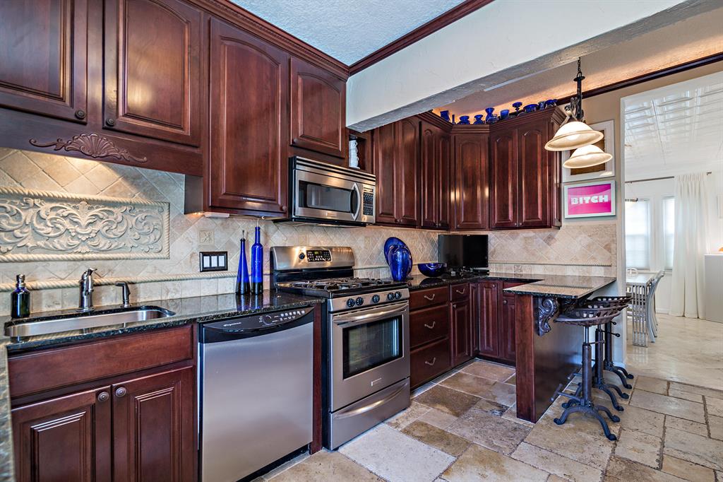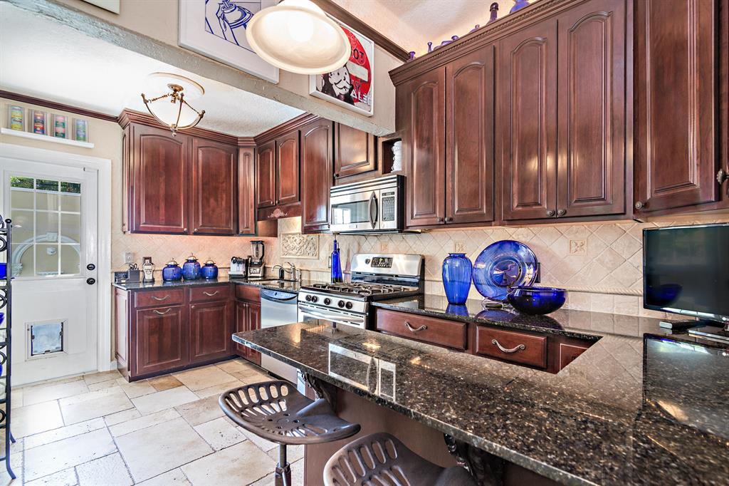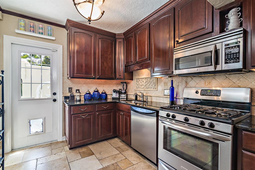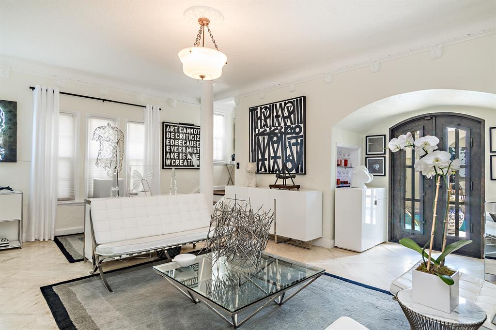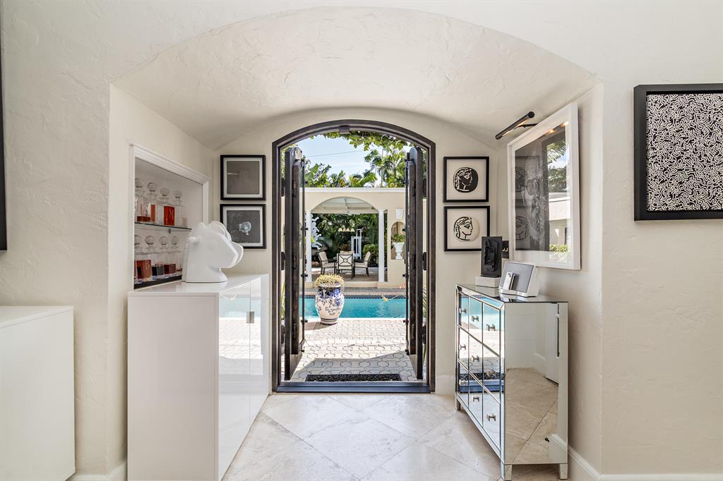 This tastefully renovated 1925 Spanish style Flamingo Park residence epitomizes elegance and classical style offering a 2-bedroom 1.5 bath house, a 1 bedroom 1 bath guest house and pool. The downstairs living spaces offer period architecture and easy traffic flow for entertaining. The large living room offers high ceilings, a fireplace, travertine flooring and impact French doors that lead to the pool area. The updated eat-in kitchen off the formal dining room offers a gas stove, granite counters and an updated half bathroom. The second-floor master suite offers wood flooring and the renovated master bathroom offers a glass shower and marble flooring. The second bedroom is used as a home office. Outside the pool area leads to the dining pavilion and a 1 bedroom 1 bath guest house and