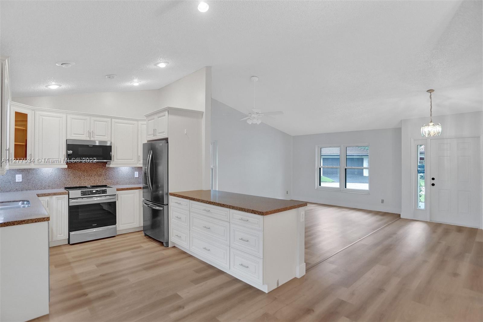 Beautiful and spacious Home in very desired Coral Springs w/ highly coveted 3 Bedrooms and 2 Baths. Completely remodeled with over 1299 square feet of amazing living space this detached single family home has it all! Home is bright & airy w/ open floor plan that flows with ease. Home has wood flooring throughout with an beautiful open custom kitchen with full granite counters, full back splash in same granite, custom made wood cabinets, Top of the line Stainless Steel appliances, modern square baseboards everywhere & beautiful high ceilings in smooth white finish. Large screened in patio, 1 car garage, driveway for parking for multiple vehicles & plenty of guest parking as well. Great neighborhood & schools, close to highways, shopping & restaurants.