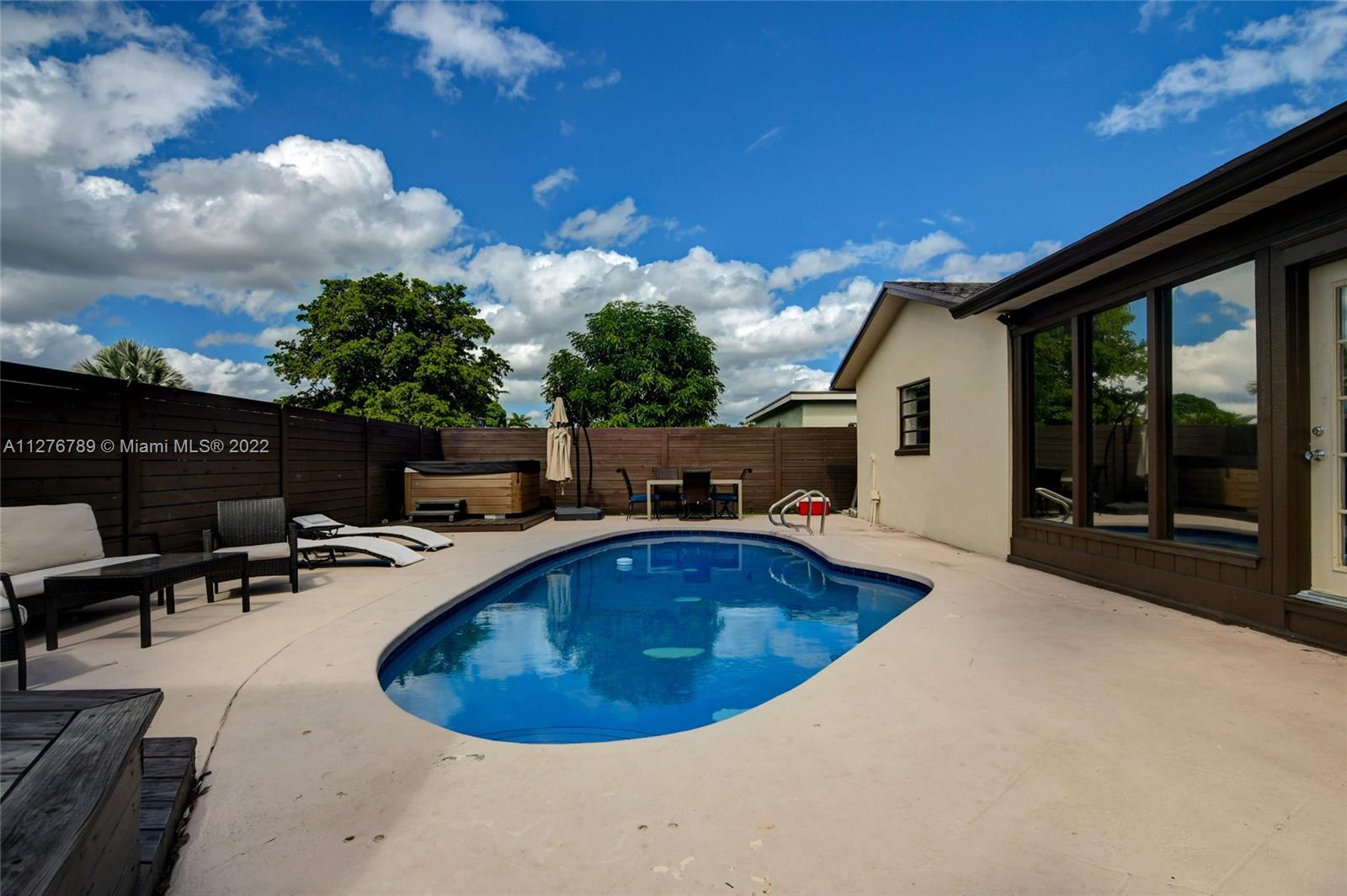 Enjoy your summer swimming and relaxing poolside in your very private backyard with total privacy! NO HOA. This 3 Bedroom, 2 bath + office home features a very large master bedroom with an amazing walking close, a family room, a large living room, dining room and an open kitchen with stainless steel appliances, granite countertops and a lot of storage. Walk distance to Veterans Park, House of worship. Close to shopping, restaurants and all major roads. Hurry, You will be pleased. No Restrictions - No fees. Just move right in. The garage has been using as a studio. Brand new 10k Jacuzzi.