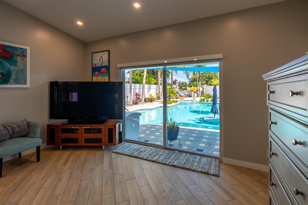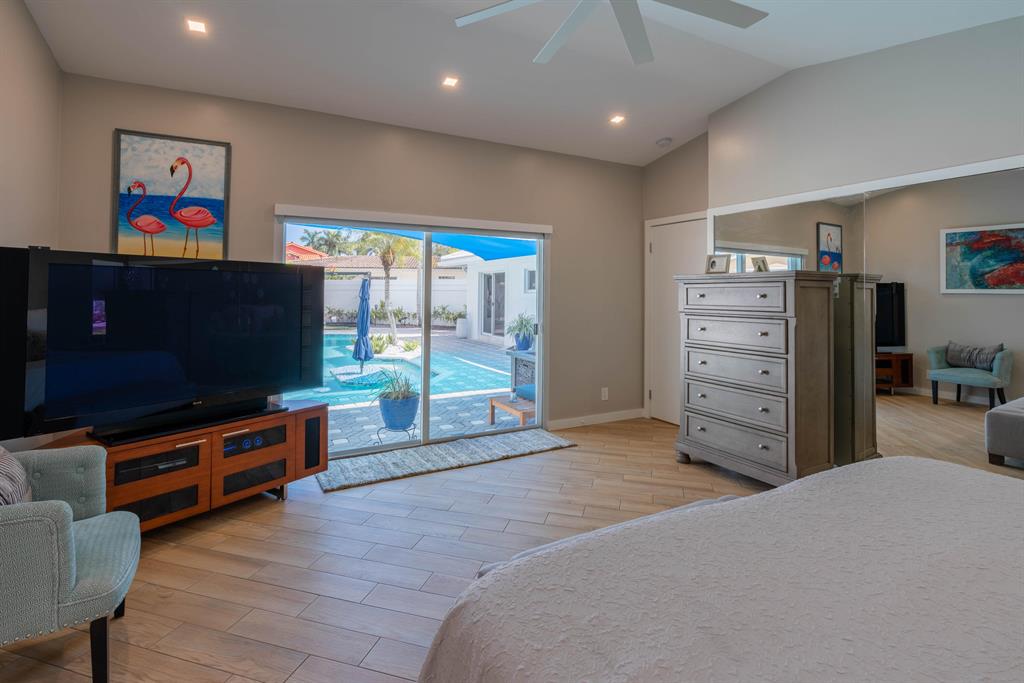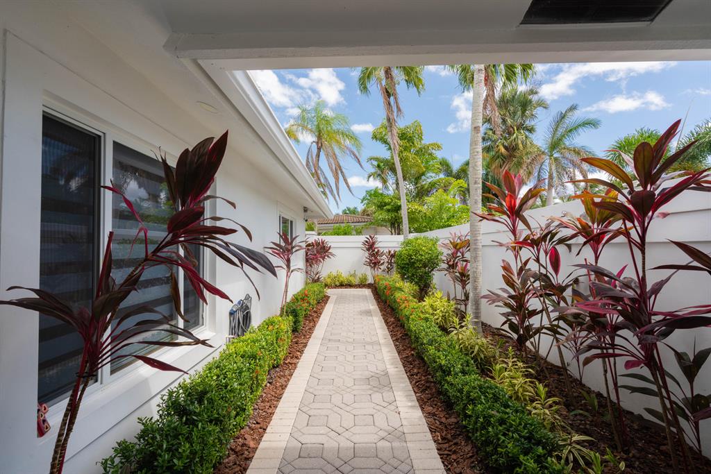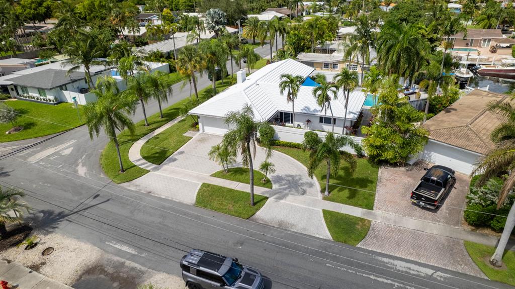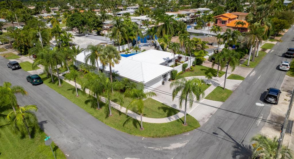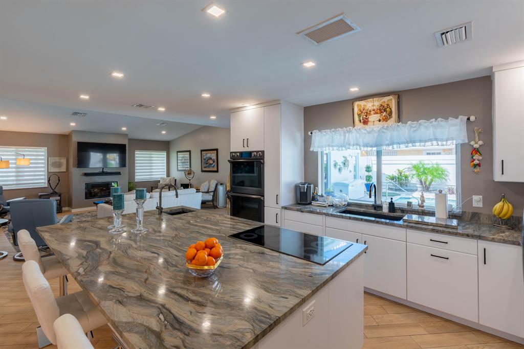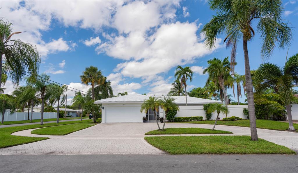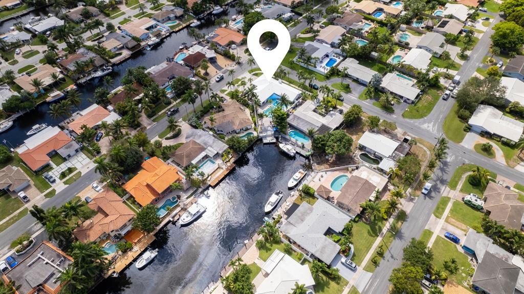 Beautifully remodeled waterfront home with ocean access on a large corner lot! The open concept floor plan allows for ample sunlight throughout this 3 bedroom, 2.1 bath home. Volume ceilings, recessed LED lighting, tile wood flooring & an oversized granite kitchen island captivate you upon entering. Each bedroom has sliders leading out to the resort style backyard where you'll find an oversized pool/spa & 30 feet of water frontage. A concrete wall surrounds the home for added privacy, truly making this your very own tropical oasis. Full house generator, all impact windows & doors, upgraded landscape lighting, outdoor shower & cabana bath. Brand new electrical panel installed Sept. 2022 & new dock flooring just completed. This Florida home is truly move-in ready!