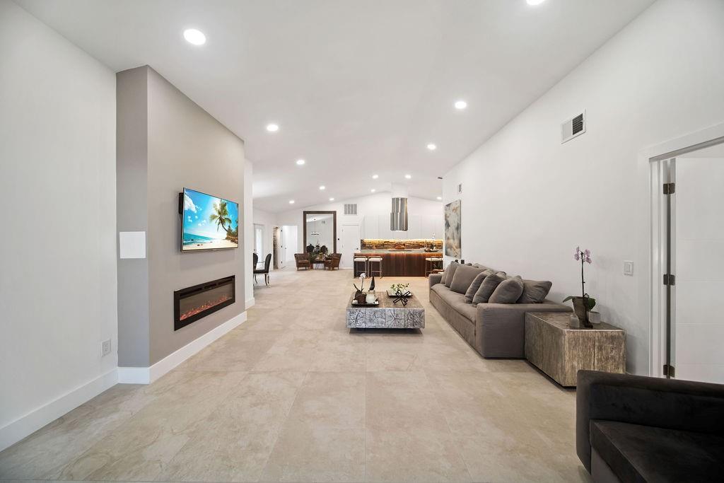 Absolutely stunning 3/3.5 single family waterfront home completely remodeled with only the finest of materials. Property upgrades Include: 48" x 24"matte finished imported porcelain tile, huge chef inspired contemporary Italian kitchen with unique secret butler's pantry, massive 12x6 island dressed in rich 1/2" glass countertop including waterfall, undercabinet lighting throughout, all new stainless steel slim line kitchen appliances, oversized 60" built in fridge/freezer, unique design ceiling mounted Falmec 30" Ellipso Island range hood (ducted & vented outside) glass enclosed Temp controlled wine cellar, custom walk-in wardrobe closet, covered outdoor kitchen w/quartz bar top, propane grill, Intergrated sink, faucet, mini fridge & stainless steel cabinets. See list for complete upgrades