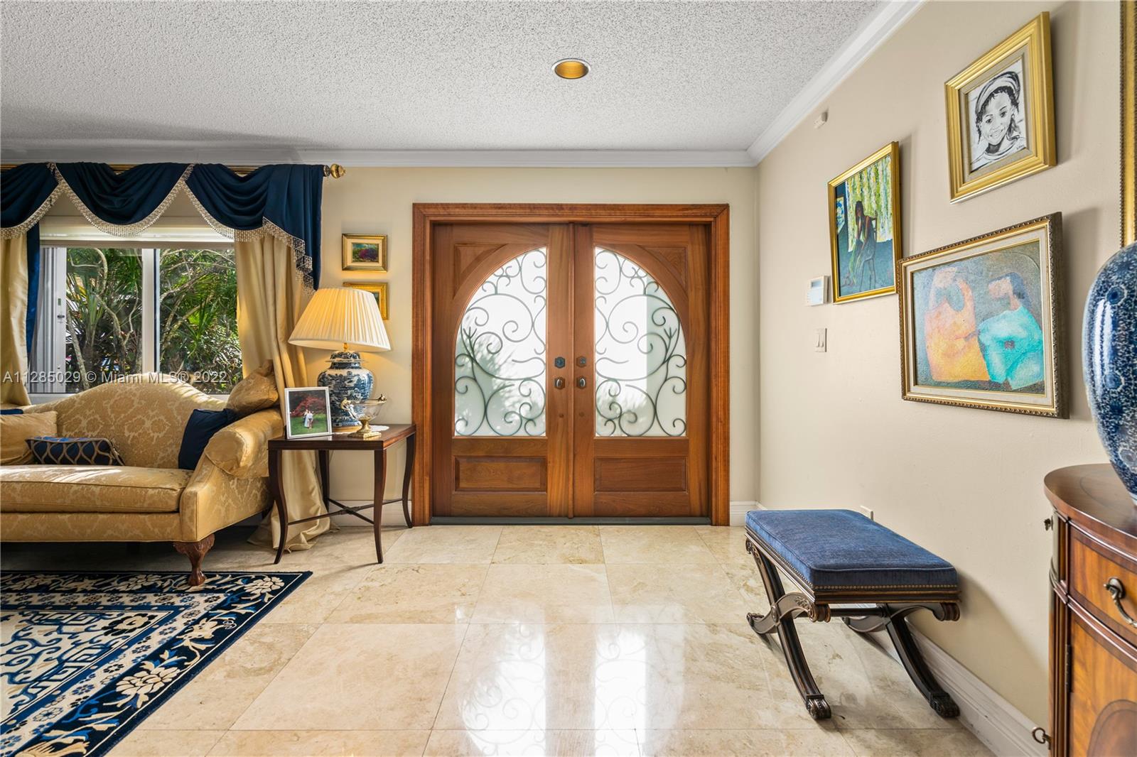 Gorgeous , elegant corner lot home with marble floors, an additional bedroom and full bath on the first floor, upstairs you have beautiful cherrywood floorings, a principal suite ,beautifully updated bathroom and a huge walk-in closet, 2 additional spacious bedrooms and an unbelievable full size laundry room . Impact windows and doors, a family room looking out to the tropical backyard surrounding this home. Sit outside and enjoy nature with complete privacy. A driveway that fits 4 cars. This residence has been kept in excellent condition.