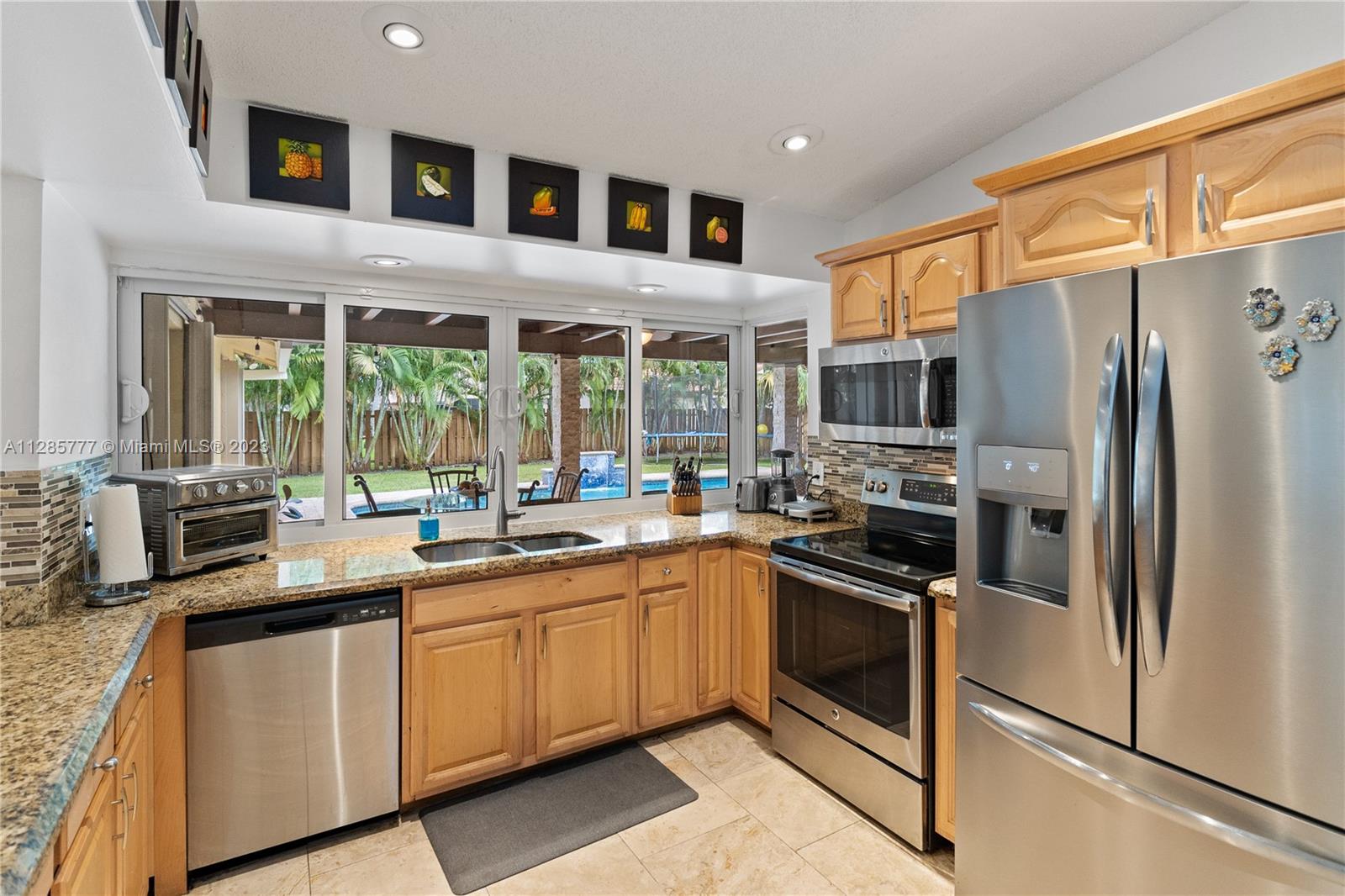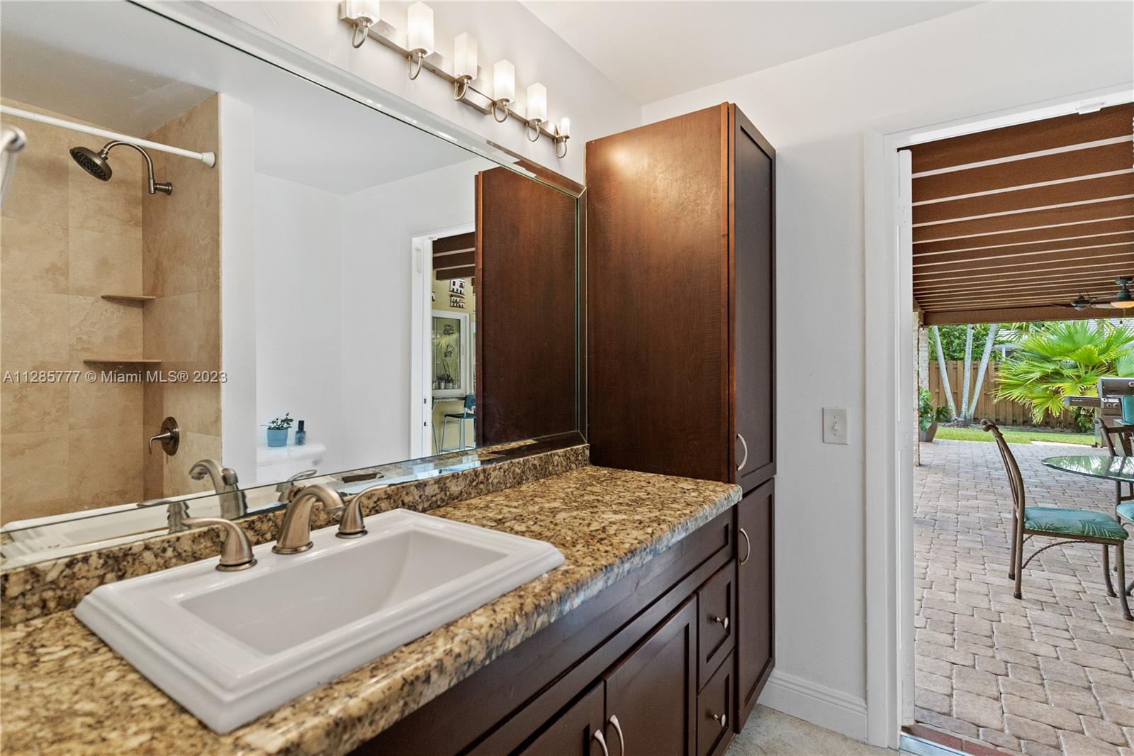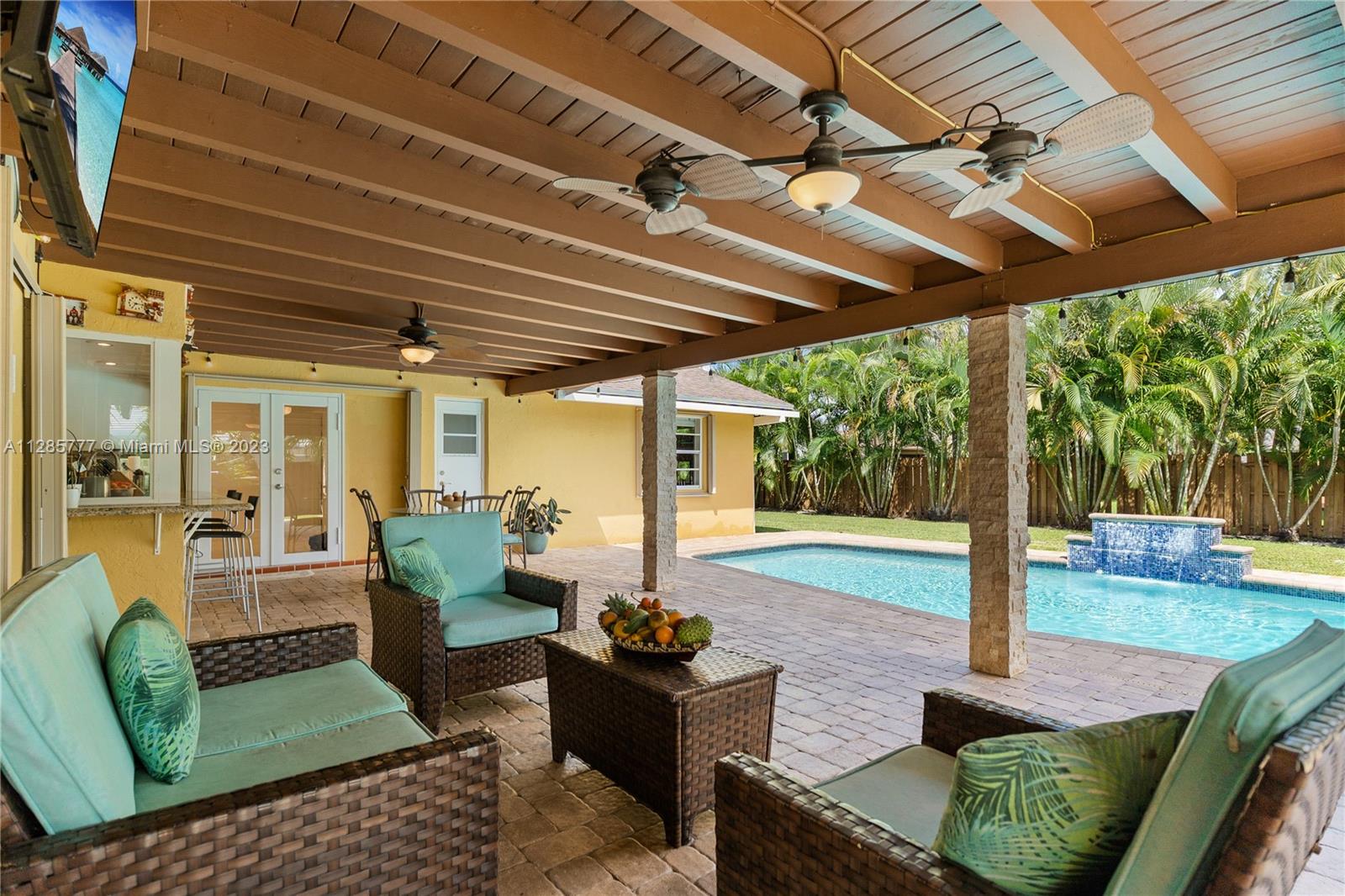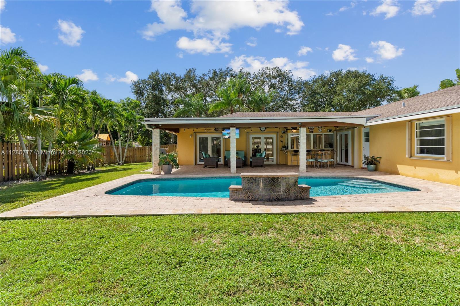 EXCLUSIVE, BEAUTIFUL AND BRIGHT 5 BEDROOMS 2.5 BATHS POOL HOME LOCATED ON OVER SIZED LOT IN AMAZING JACARANDA LAKES! BRIGHT, OPEN AND WELCOMING FLOOR PLAN TO YOUR GORGEOUS LIVING AND DINNING AREA WITH TRAVERTINE FLOORS AND IMPACT FRENCH DOORS! SPACIOUS AND LARGE EAT-IN KITCHEN WITH EXPANSIVE GRANITE COUNTER OVERLOOKING THE FABULOUS POOL TO ENJOY THE RELAXING POOL WATERFALL COVERED PATIO AREA! STAINLESS STEEL APPLIANCES AND CUSTOM CABINETRY, HURRICANE SHUTTERS AND ALARM SYSTEM! ADJUSTED AREA 2557 SQFT!!