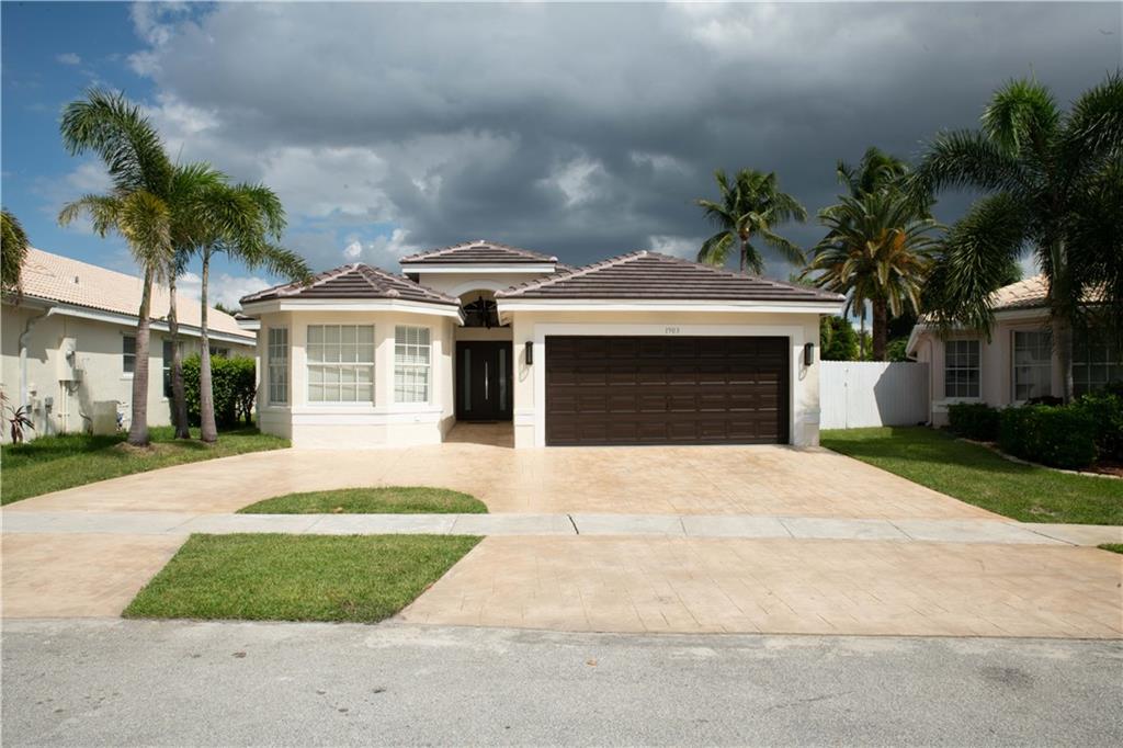 You are warmly greeted by an open concept with tile floors that extend throughout the home, vaulted ceilings, spacious and open giving you the comfort and feeling of home. --- This charming One-Story home 4 bedrooms/ 2 bathrooms, 2 cars garage, ROOF 2021,New POOL 2020, Wash&Dry machine 2022, Circule driveway 2022. Come to see your move-in home in the desirable community Silver Lakes, Coconut Bay. A+Schools zone.