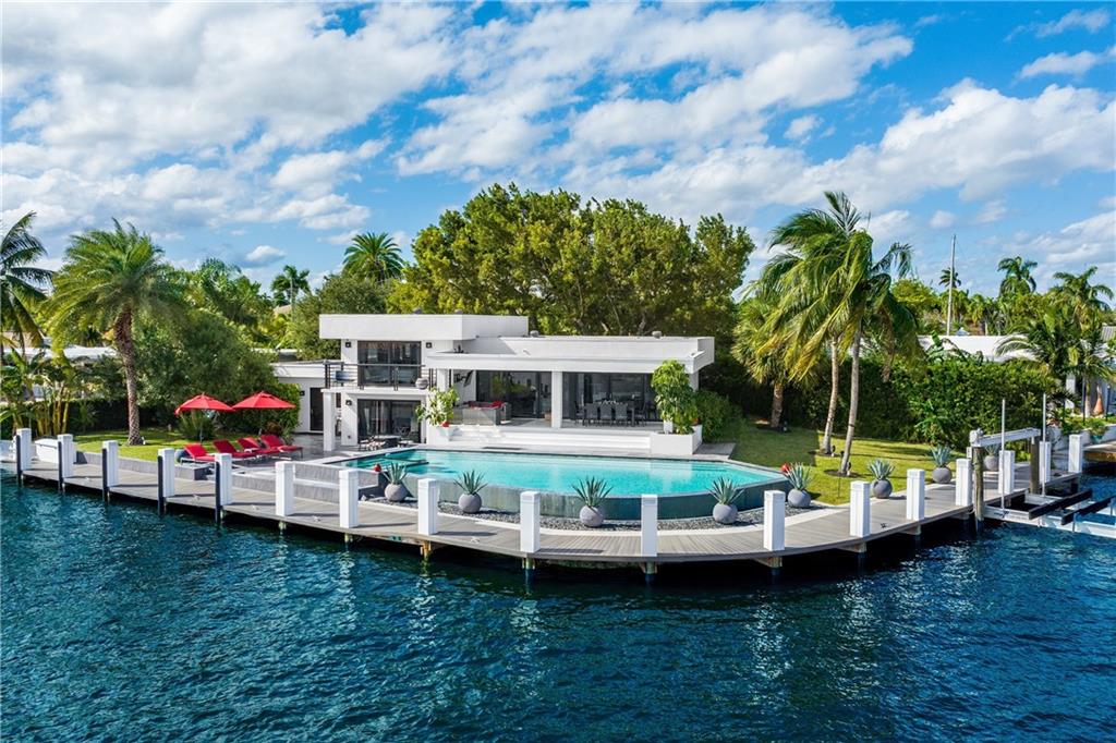 Set against an idyllic waterfront backdrop, this modern marvel on a point lot celebrates substance & style under one roof. Bright, open spaces throughout the custom-built estate offers designer details that invite the outdoors inside- enjoy expansive waterfront views from every room. An impressive clean-lined gourmet kitchen features cutting-edge Thermador appliances and custom cabinetry. The upstairs master bedroom boasts modern and tranquil vibrance with its own private balcony. The exterior boasts 190' feet of waterfront with 180' of composite dock (ocean access and no fixed bridges) & 24,000 lb. boat lift on the East side. Infinity pool with expansive outdoor living spaces for entertaining. This impressive residence is offered fully furnished and move-in ready.