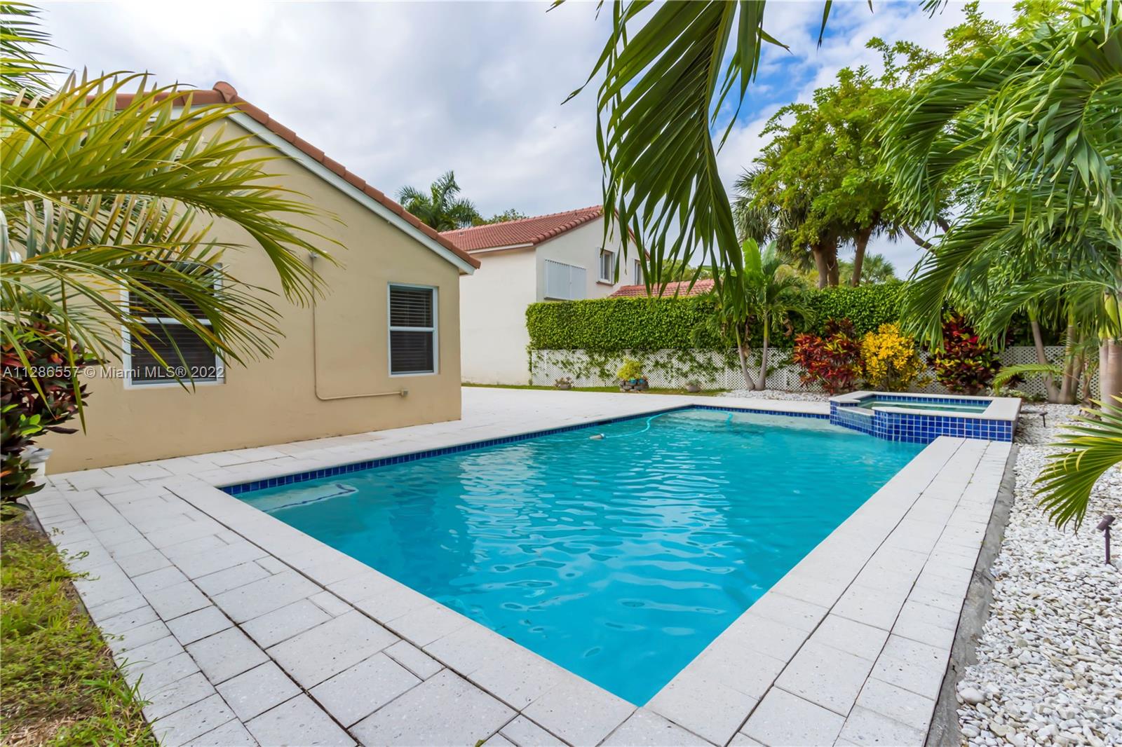 Lovely turnkey home in the golf community of Grand Palms. Freshly painted and beautifully maintained, this 3 bedroom 2 bath single story home features an inviting floor plan with plenty of natural light and tile floors, plus the added hurricane protection of clear high impact glass throughout the home. The home boasts 2 double door exists to the back patio where you can dine al fresco by the sparkling pool and spa, hemmed by lush greenery. This gated golf community offers 3 - 9 hole courses surrounded by the best of South Florida living and located in the heart of Pembroke Pines, find dining options of every kind, entertainment and a plethora of shopping.