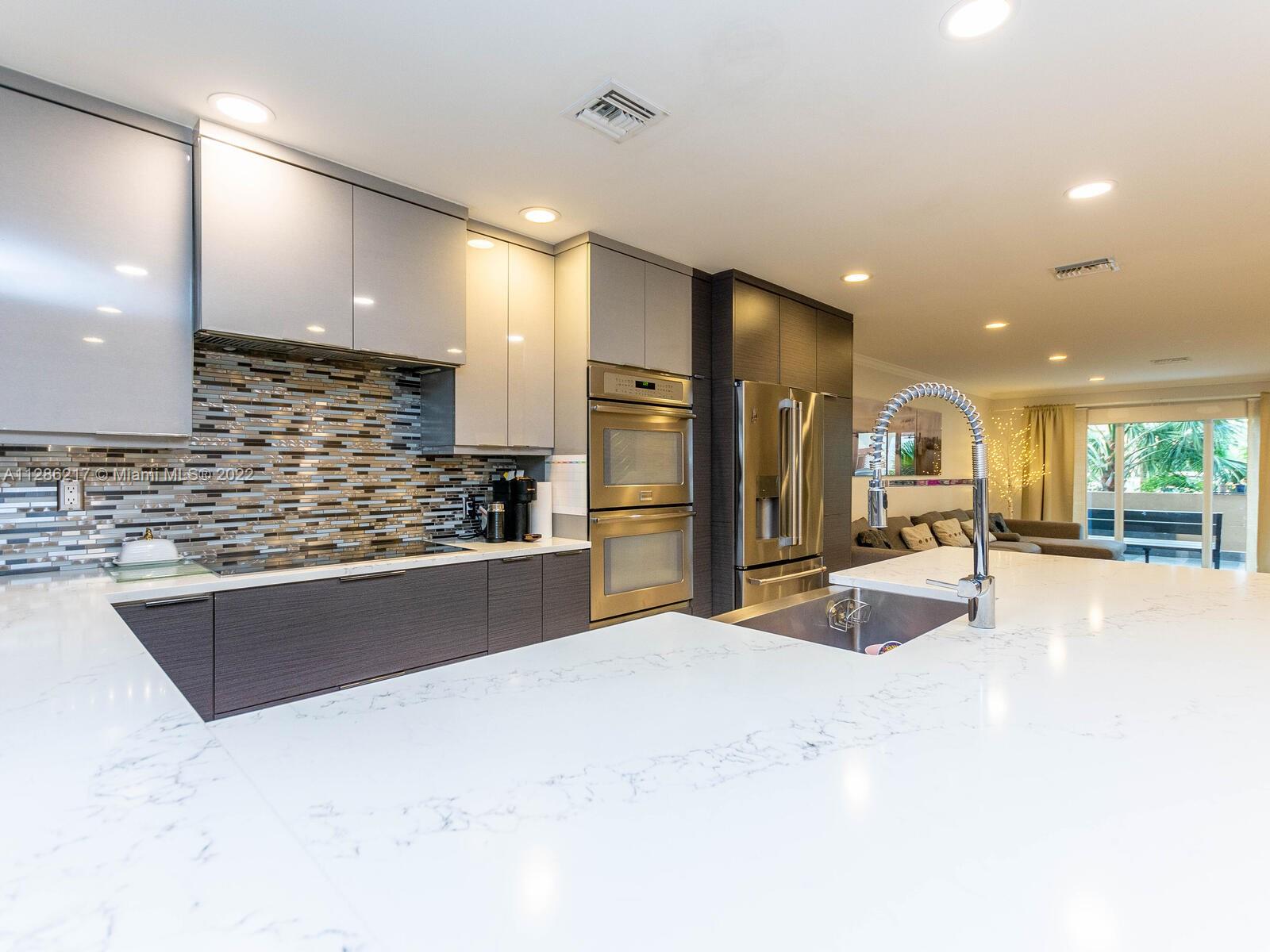 Enjoy this majestic fully renovated townhome with open-concept floorplan and updated fixtures and finishes throughout. Including a custom made professional kithchen with top of the line stainless steel appliances and quartz counter tops with massive island for casual dining seated, design 3 full bathrooms, luxury porcelain tile in the ground floor and laminate flooring uptairs, tankless Titan wather heater, impact windows for added storm protection. Outdoor spaces include pergola-covered front terrace and back terrace fenced with big shed for storage. Pet-friendly community features clubhouse, pool, basketball and tennis courts, playspace for kids. Walking distance from temples, dining, shopping plazas and recreation. Close to Hard Rock Hotel and Fort Lauderdale International Airport.