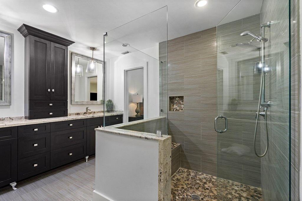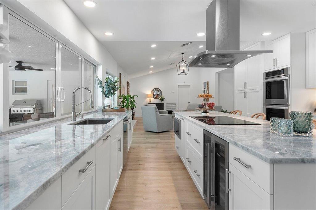 Located on a huge lot with two driveways and plenty of parking, this Estancia South home boasts everything you could want on your Boca wishlist. From the top down: Brand new roof 2022, spacious Ultracraft kitchen with LG appliances, Moosoo wine fridge and custom pantry with electric INSIDE for convenience. Two dishwashers, two refrigerators, two sinks with exotic stone countertops in Cristllita blue. Custom lighting. Impact windows & doors. New laminate floors throughout the home with tiled bathrooms. Dramatic large white tile fireplace. Home office. Split floorplan that showcases the huge pool. Brand new summer kitchen with BBQ comes with the home. Entertain outside under the canopy of the roof. Interior and exterior ceilings fans. Gated community w/tennis, park. Walk to worship/dine.