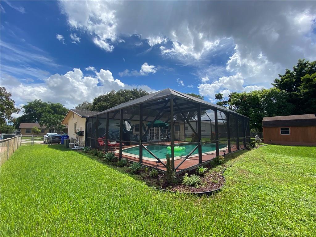 There's no place like home for the holidays! This move-in ready Pool Home is situated comfortably in sought-after Pembroke Pines. With plenty of room for a boat or RV, the fenced-in back yard features a shed/workshop & generous screened-in pool/patio. French doors going inside and a Sun Setter retractable awning for outside. This cozy home boasts a new water heater & newer AC. Large master bedroom w/ roomy closet/storage space, and a designated utility/laundry room just off kitchen. Perhaps the best part about this tucked-away Pines home is the bonus bedroom/office/den, currently being used as additional bedroom. Your family is protected with galvanized hurricane panels/shutters for the entire house (mounted tracks). No HOA here!