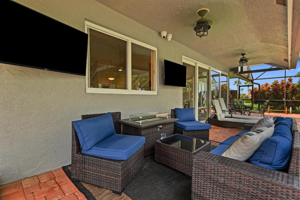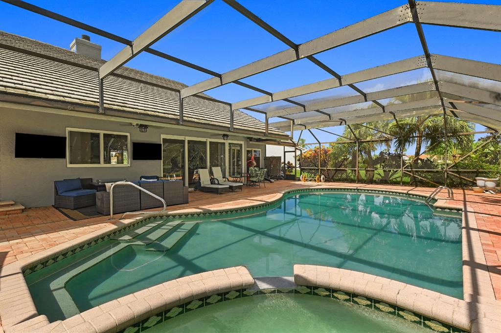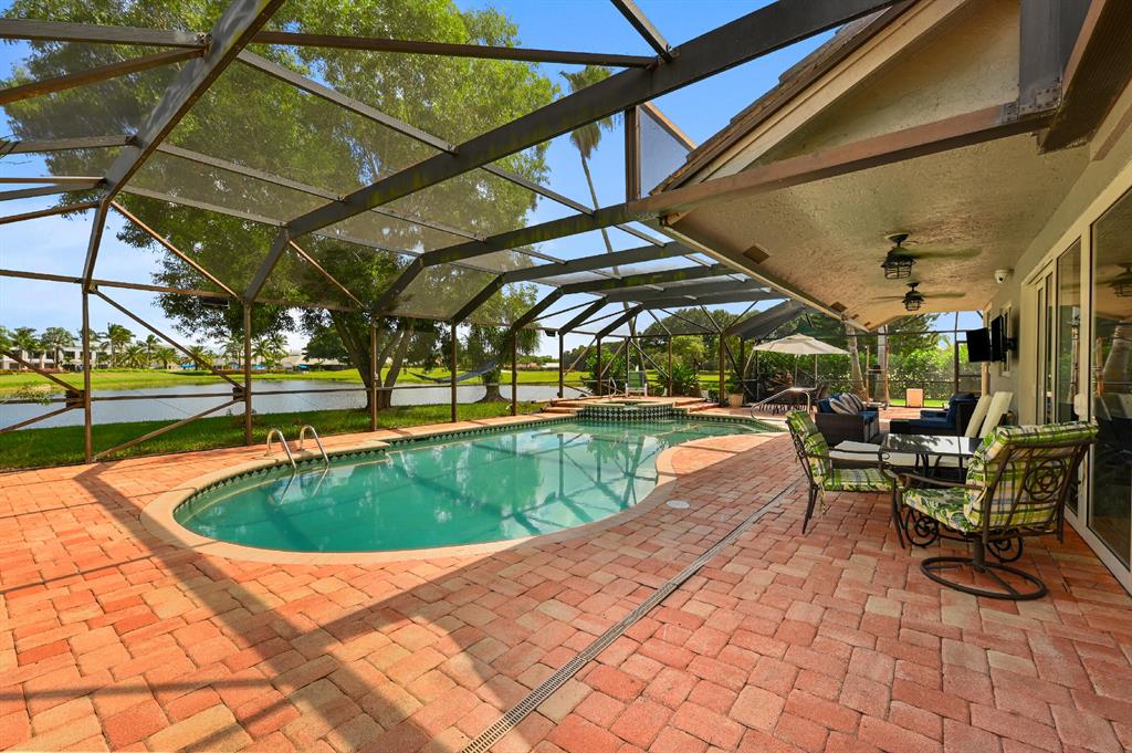 Second LARGEST LOT in Boca Woods. Beautiful 3BR, 2.5BA POOL home located on cul de sac with Lake and Golf Course View. Open floor plan. BRAND NEW kitchen with quartz counter tops, white cabinetry, subway tile, SS Appliances. Marble & Travertine in main living area. Primary Bathroom remodeled 3yrs ago. Second and half bath recently remodeled. New baseboards, interior doors, fans replaced 3yrs ago, interior painted 3 yrs & exterior 4yrs ago. Electrical Panel 2 yrs, AC 2 yrs, Hot Water less than 5 yrs, pool heater 2 yrs, fenced in dog yard with Astro Turf 2 yrs. Separate dining area, fireplace, and split bedrooms. Pool area has large patio and screen enclosure. Glass slider doors are impact and garage door Hurricane rated. Club equity is $95K.