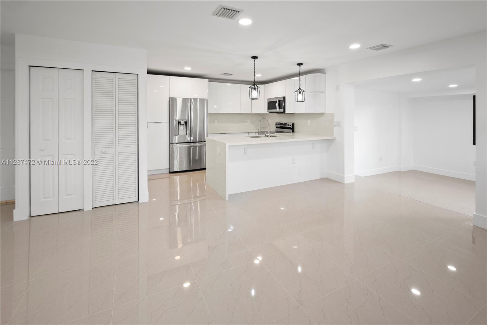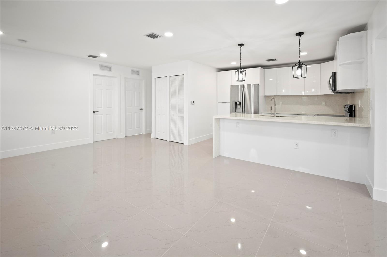 This completely remodeled ready-to-move-in home truly checks off all the boxes! The home boasts 3 bedrooms, 2 bathrooms! Numerous features include: fantastic open floor plan great for entertaining,laundry room, renovated bathrooms, porcelain floors, LED recessed lights, smart touch keyless door lock, and impact windows. Kitchen offers custom new cabinetry, quartz countertops, and brand new top of line stainless steel appliances. Perfect location in a quiet neighborhood, minutes away from major highways and shopping centers. No HOA. Contact the listing agent today to schedule a private showing!