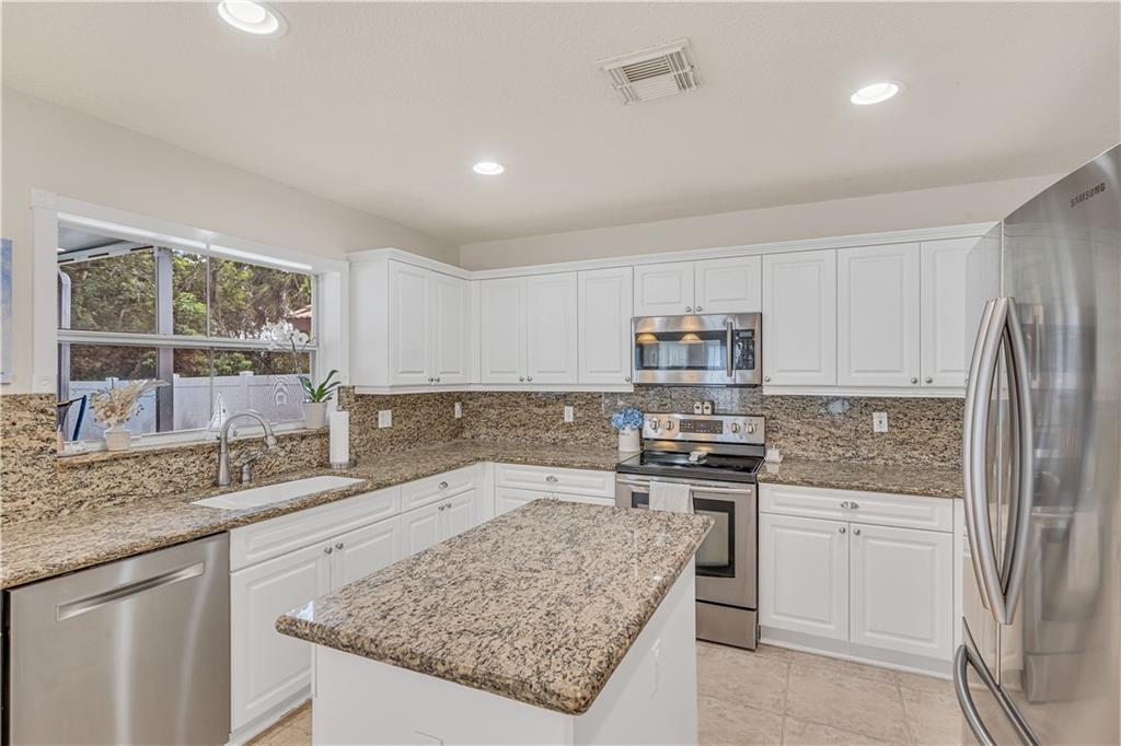 Beautiful 4 bedroom/2.5b home in Hidden Lake at Chapel Trail! Gorgeous high ceilings & natural light throughout the entire house. Expansive remodeled kitchen with stainless steel appliances, granite countertops, island, extra cabinet space. Formal dining/living room + family room. Master bedroom w/ double doors, walk-in closet, barn door leading to NEW fully remodeled bathroom, double-sinks, tub, walk-in shower. Engineered hardwood floors on stairs & 2nd floor. Laundry room with custom folding table & storage. Pass through window to patio enclosure - great for entertaining! Pool has NEW pump. NEW AC. Accordion shutters & panels. Impact garage & front door. Shelves & fridge in garage. Private lot w/ no neighbors in the back! Gutters. Close to schools.