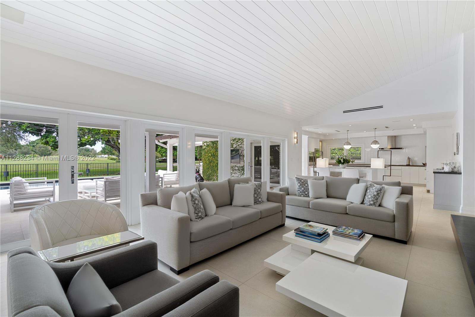 Situated on one of the most gorgeous streets in the original George Merrick Pioneer Village. Perfectly positioned on the 15th hole of the Riviera Golf Course with breathtaking views. The 2016 home remodel included replacement of roof, electric, plumbing, and all interior and exterior finishes. Open concept floor plan with living and dining room, cohesive to family room and kitchen area features pre-wired Sonos sound system, gas fireplace and high ceilings – prime for entertaining family and friends. Stunning views from your backyard terrace is complete with plenty of space for lounging and hanging out by the heated salt-water pool. Built-in Summer kitchen with barbecue, ice maker and beverage refrigerator. This is a fabulous opportunity to own a house on the coveted Santa Maria Street.