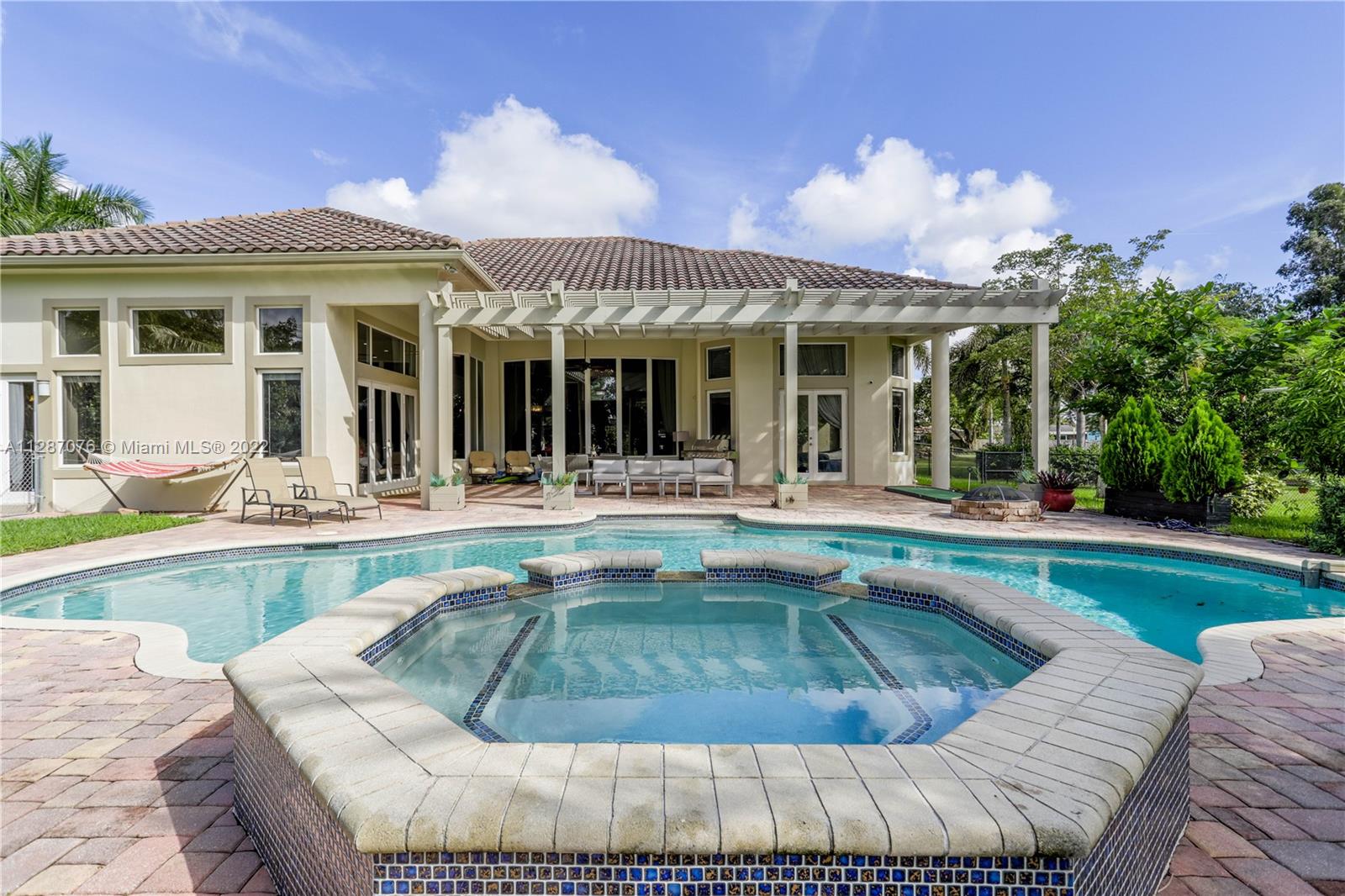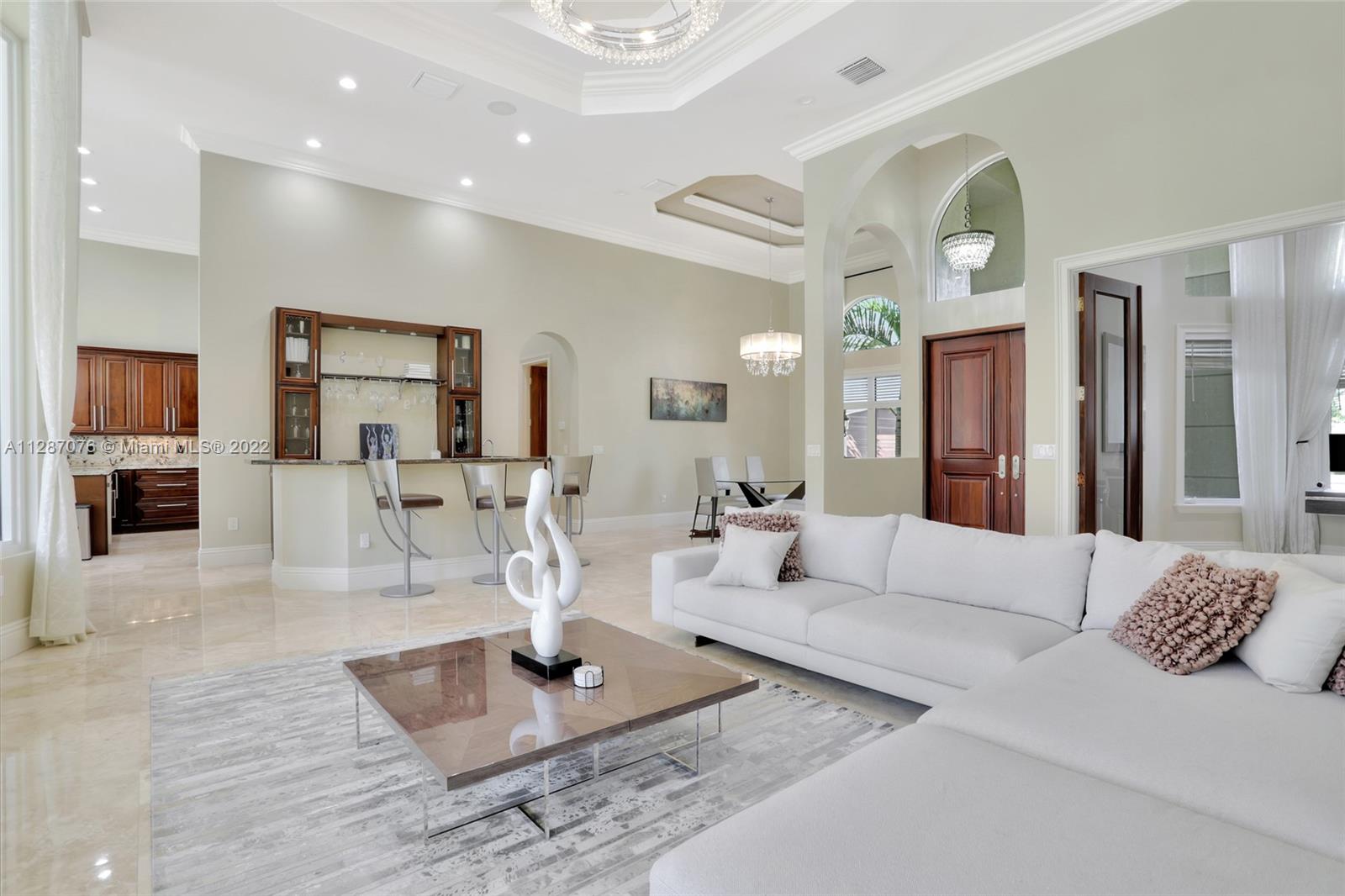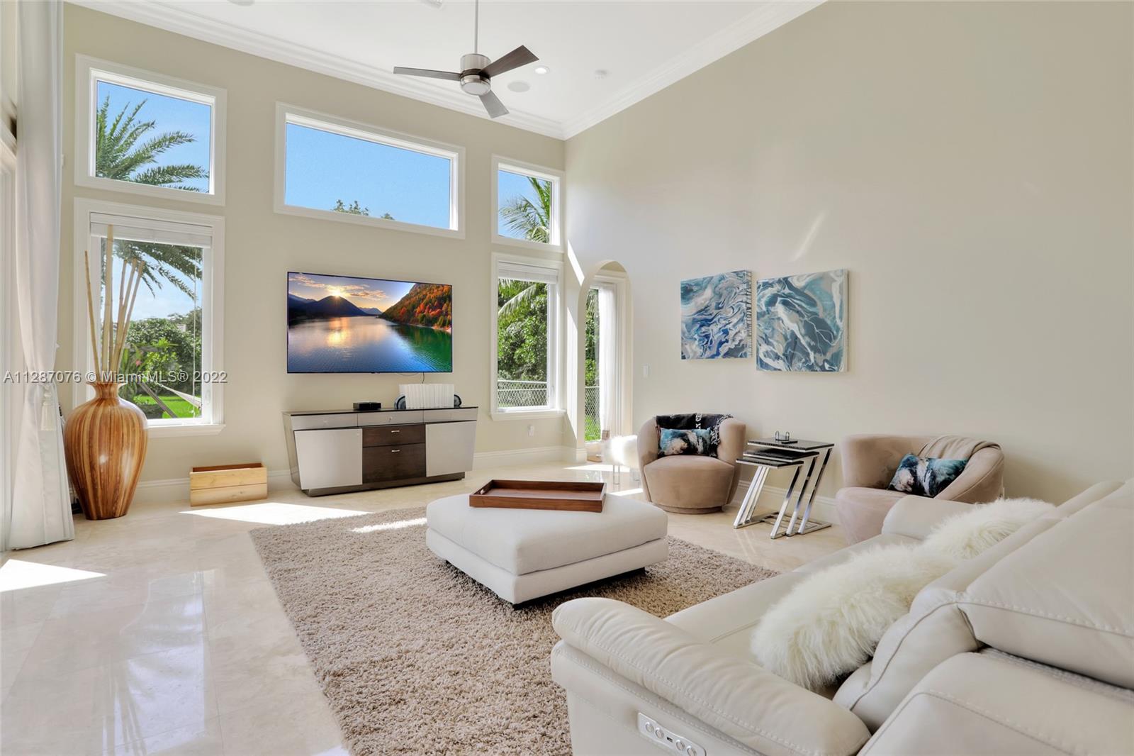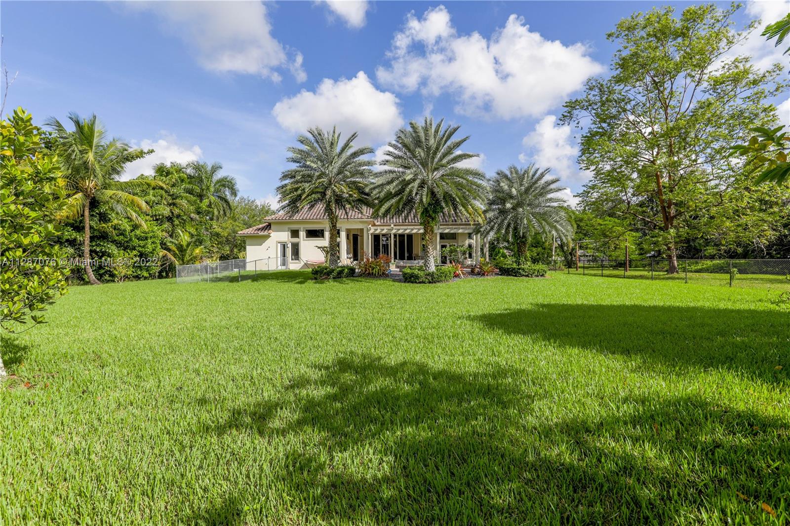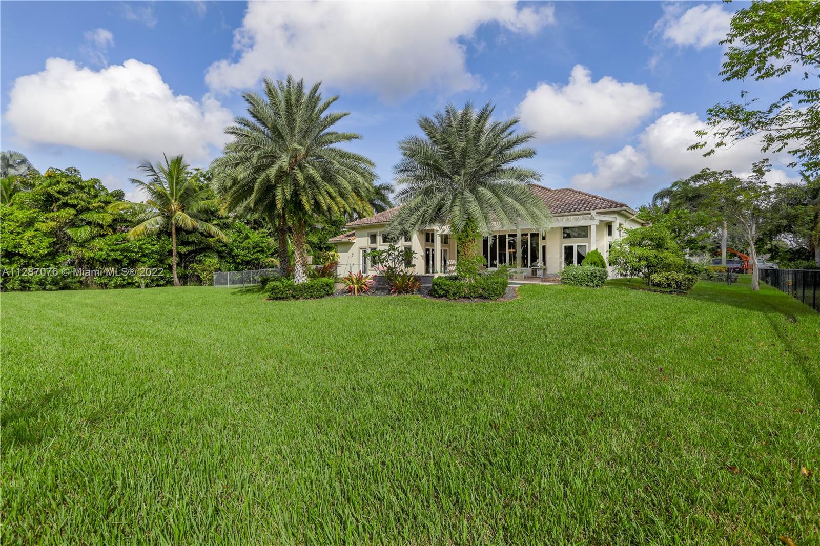 Stunning 2013-built single story 5 Bed / 4.5 Bath, 3-car extra deep garage with just under 40,000 sq ft of land in Plantation Acres. 14’ ceilings, marble floors in living areas, wood floors in bedrooms + den, large impact custom windows allowing lots of natural light, 3 HVAC zones + resort backyard fully fenced in with pergola, covered entertainment space + large heated pool with jacuzzi. Huge master suite with 2 walk-in closets, 2-sink bathrm + jacuzzi. Open floor plan with oversized gourmet kitchen with Thermador Refrig, gas range + marble center island, family room, den, formal dining room + huge living room with wet bar. Many upgrades like new water heater, new HVAC unit + new pool heater. No HOA fee and no restrictions. 2 miles from Sawgrass Mills Mall + all shopping + restaurants.