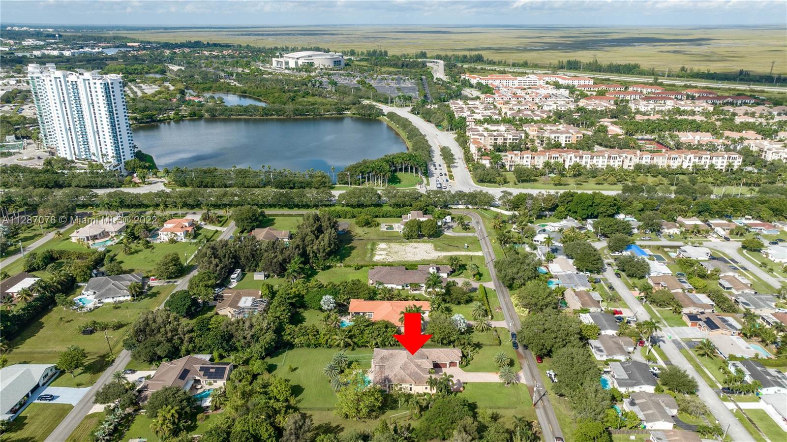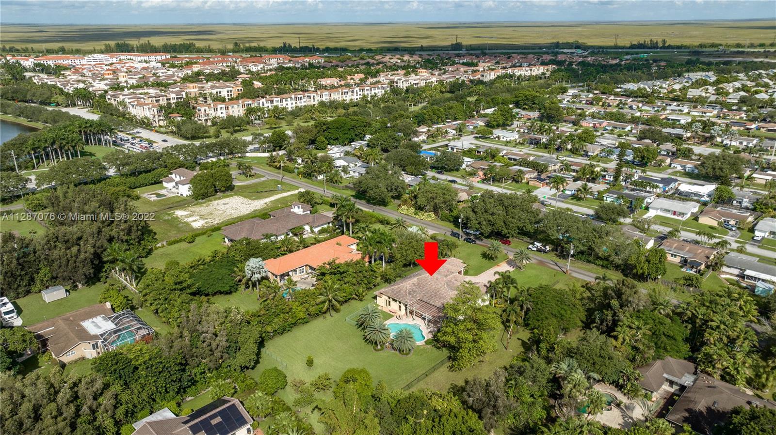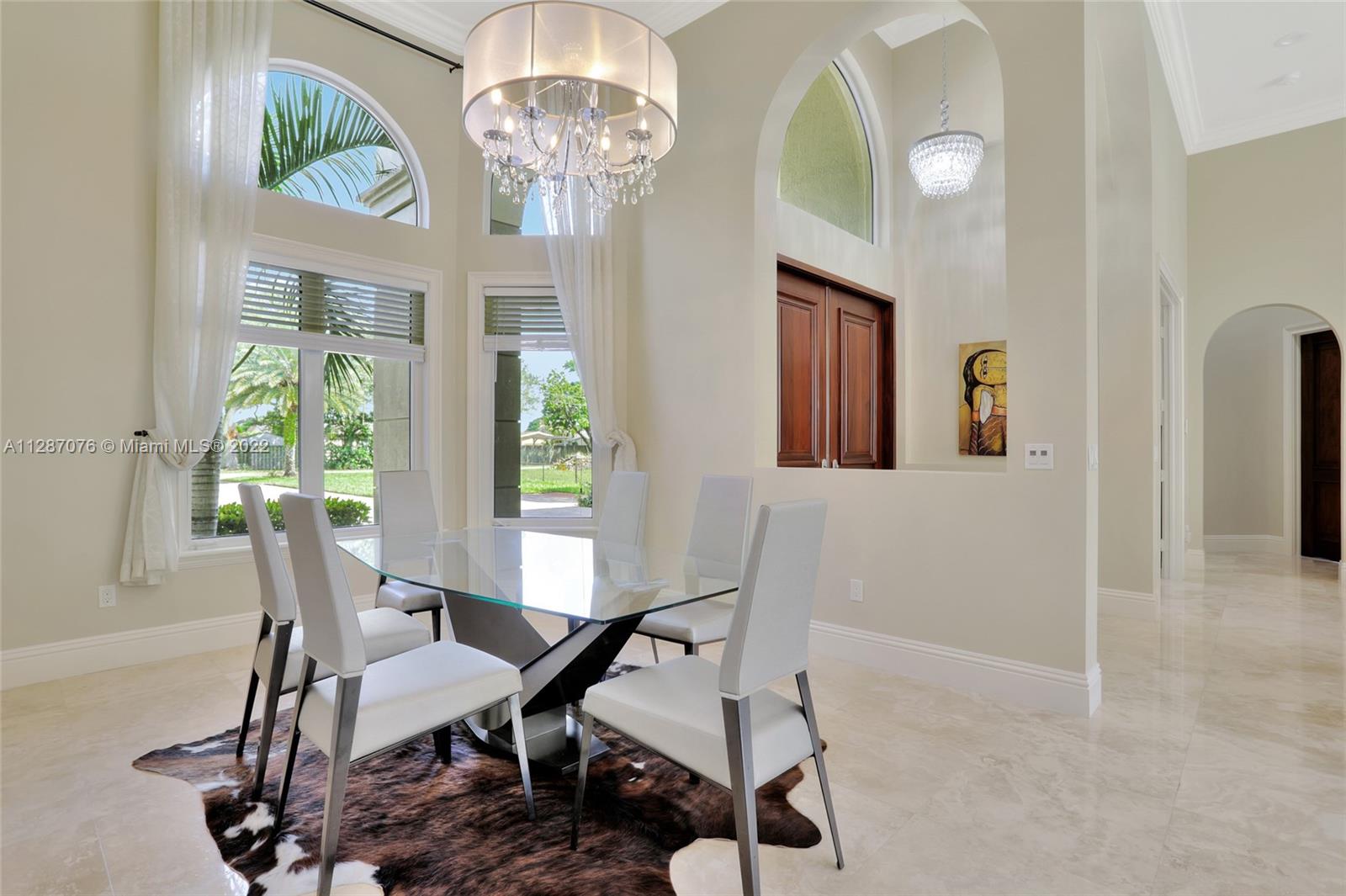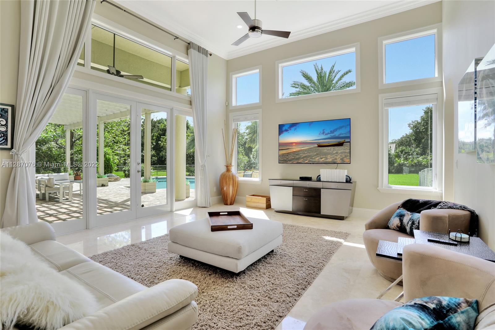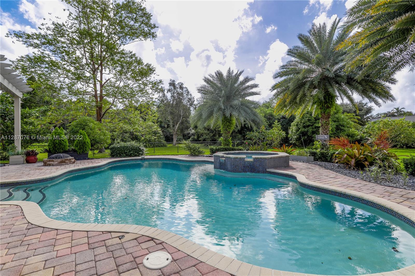 Stunning 2013-built single story 5 Bed / 4.5 Bath, 3-car extra deep garage with just under 40,000 sq ft of land in Plantation Acres. 14’ ceilings, marble floors in living areas, wood floors in bedrooms + den, large impact custom windows allowing lots of natural light, 3 HVAC zones + resort backyard fully fenced in with pergola, covered entertainment space + large heated pool with jacuzzi. Huge master suite with 2 walk-in closets, 2-sink bathrm + jacuzzi. Open floor plan with oversized gourmet kitchen with Thermador Refrig, gas range + marble center island, family room, den, formal dining room + huge living room with wet bar. Many upgrades like new water heater, new HVAC unit + new pool heater. No HOA fee and no restrictions. 2 miles from Sawgrass Mills Mall + all shopping + restaurants.