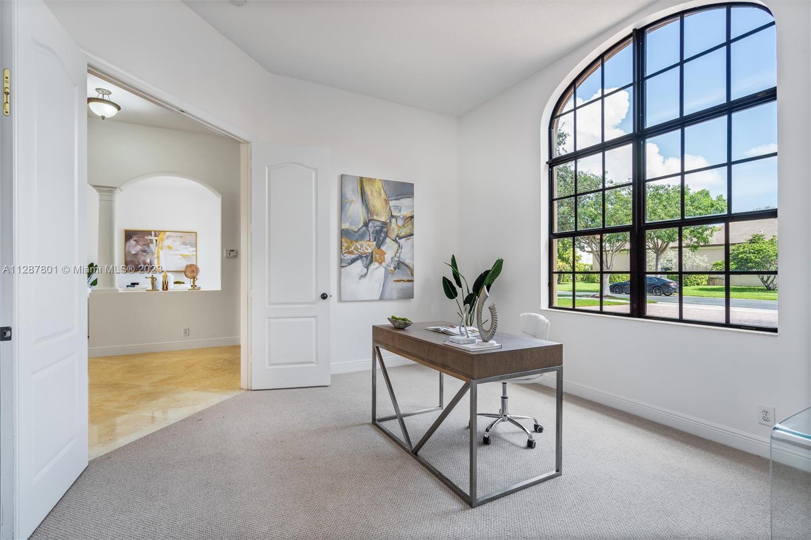Tucked away in boutique, gated, Parkland Estates, a community of 35 homes sits a sprawling 5BR/4BA/Office Mediterranean-inspired residence. 4,300+SF, 1/3acre, waterfront w/heated pool & spa. Oversized driveway, 3-car garage & 2nd-story balcony. Step in-eyes drawn to volume ceilings, travertine floors & canal & pool views. Formal DR w/access to butler's pantry/bar leads to chef's kitchen w/GE Monogram Pro appliances, walk-in pantry, cooking island, counter bar & 2 dishwashers. Interior just painted! 1st floor: owner's suite w/door to pool, walk-in closets, ensuite bath w/Jacuzzi, frameless shower, 2 sinks & water closet, office, LR, laundry room. Wood stairs to 2nd floor, loft area, 4BR& 2BA. Back ideal for entertaining. Covered patio, seating areas, fenced in. Come say YES to this address.