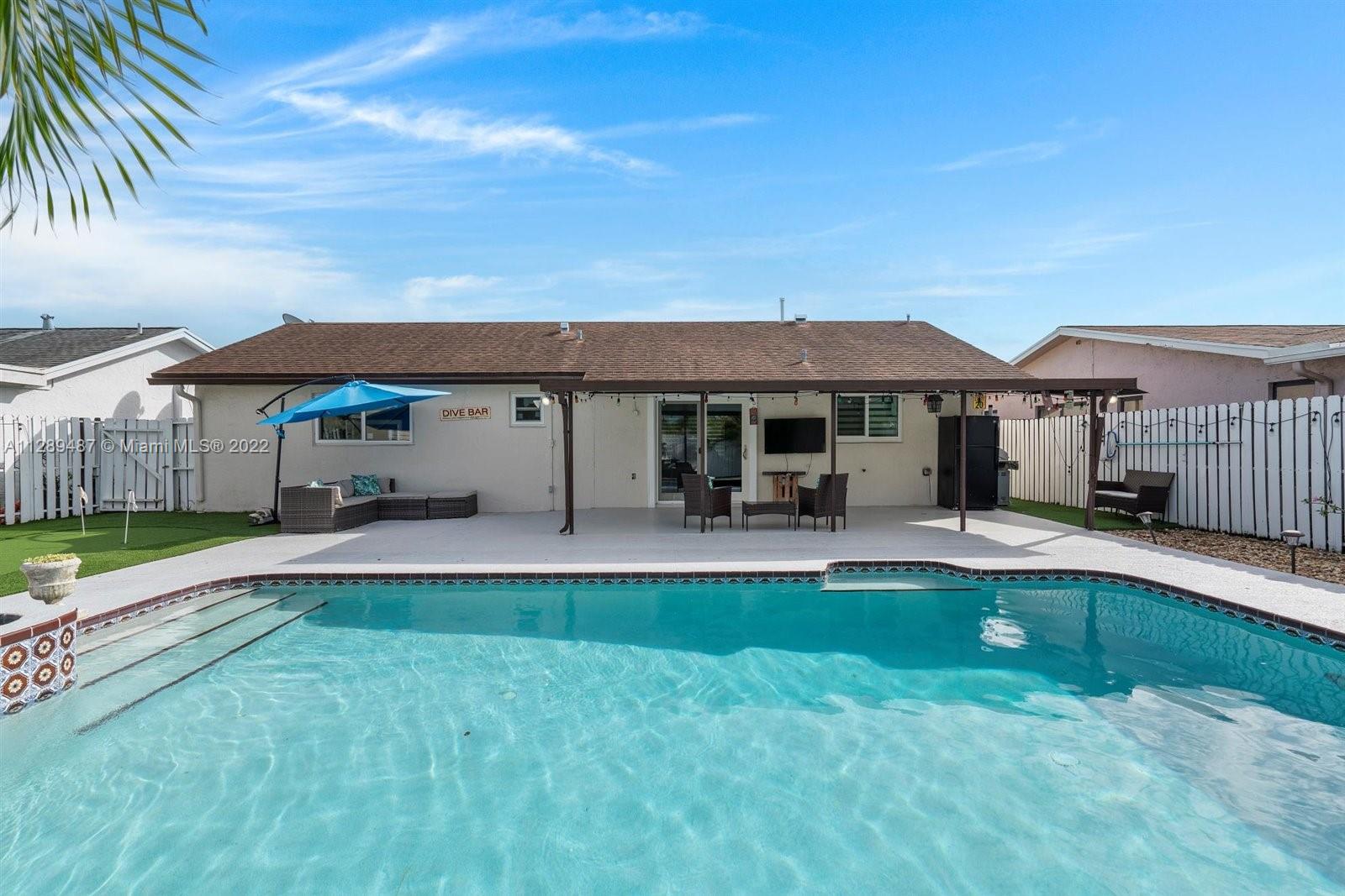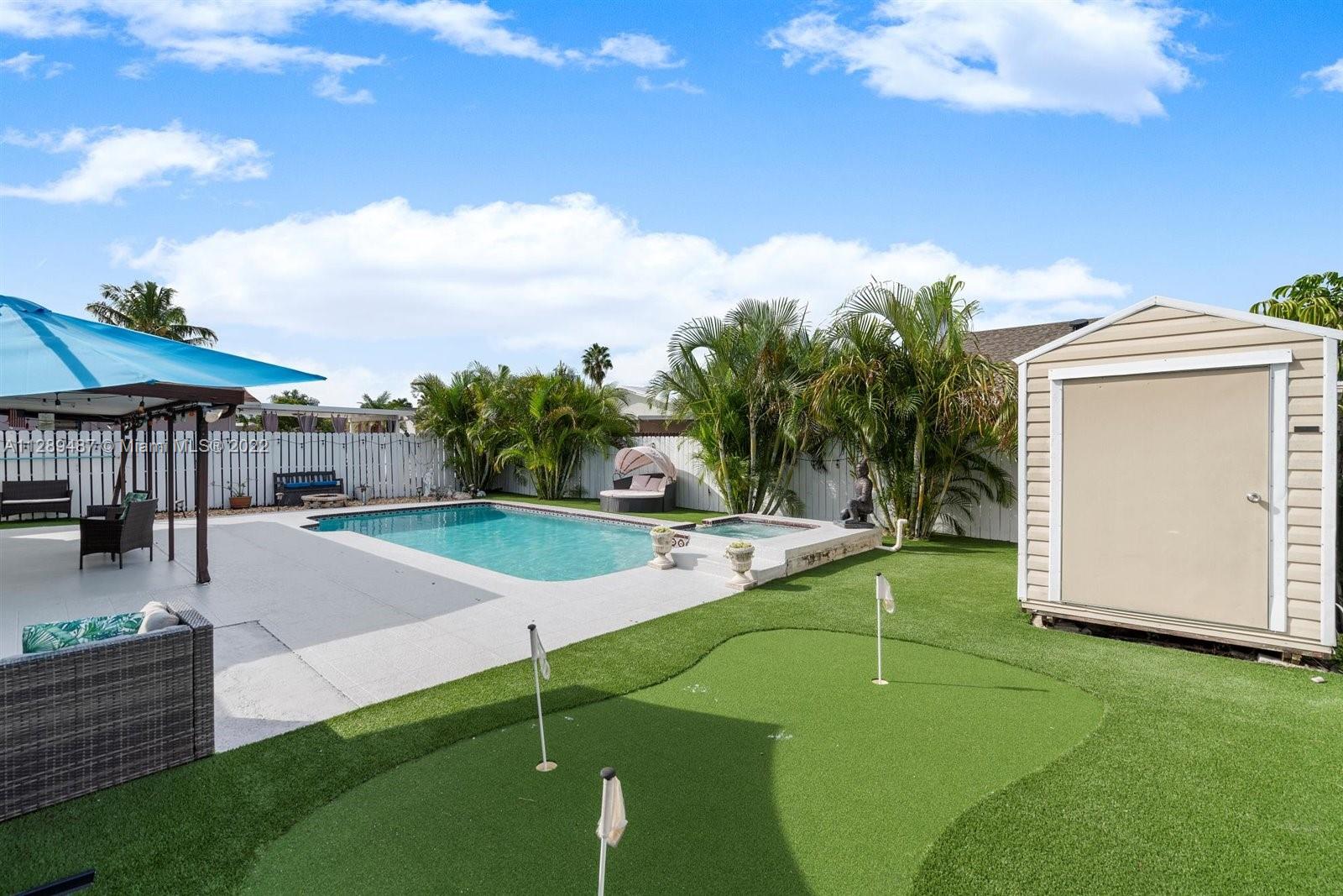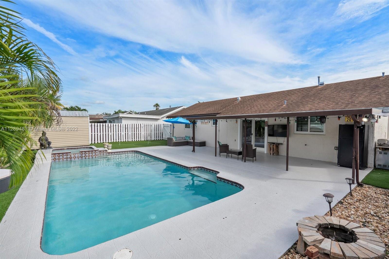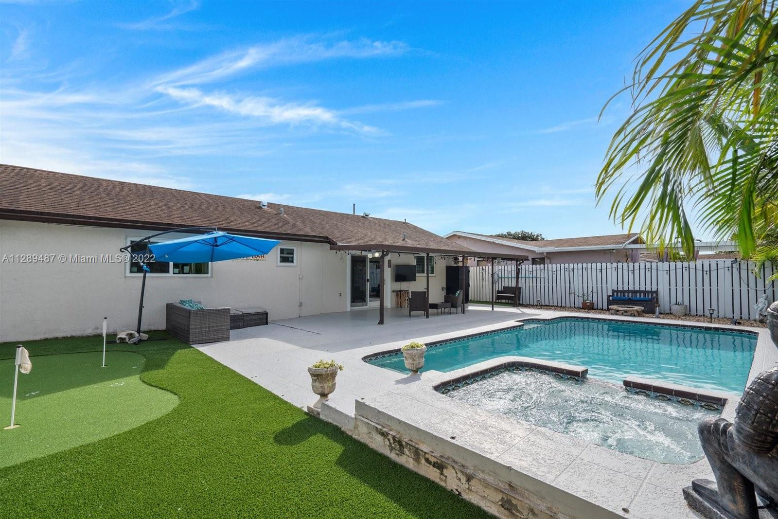 Welcome Home! Beautiful single-family home in the community of Sunrise Golf Village. Lovely family friendly community with NO HOA! Find the tranquility of being in a community that feels private while also having the freedom of not having an HOA. The home features marble floors, hurricane impact windows/ doors, heated pool/ jacuzzi, 3 mini put golf holes, fire pit and a full cosmetic remodel to the interior of the home done in the last 2 years. You will love everything about this beautiful house!