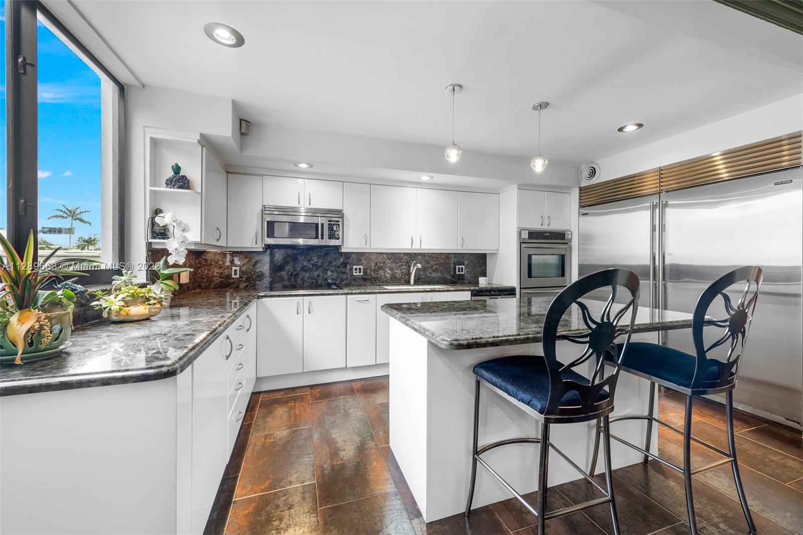4-story Venetian Isles Corner Townhouse fabulous for entertaining. This decadent residence boasts magnificent views of Biscayne Bay and Miami skyline & includes 2 rooftop terraces. Located in a full service gated condominium, it uniquely encompasses the best of single-family and condo living. Built originally for the developer, the superb layout includes a ground floor bed, bath & living room w/floor to ceiling glass overlooking the bay front lawn. 2nd floor features a spacious eat-in kitchen, family room marble floor w/full bath. The opulent primary bedroom on 3rd floor allows for spectacular views across the bay w/ensuite onyx-clad bath. 4th floor rooftop offers 2 expansive decks w/summer kitchen-great for enjoying fireworks! Equipped w/elevator, impact windows, grand wooden bookcase.