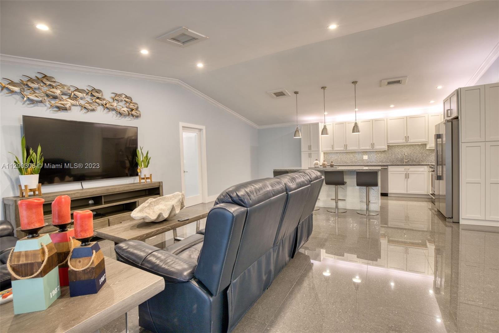 Timeline of remodel: 2017- New roof & new impact windows & doors. Garage door is also impact resistant. New concrete driveway & concrete backyard. 2018 - House was completely gutted. New aluminum beams, new electrical wiring, new recessed lighting & new mold resistant sheetrock thru-out the entire house. 2019 - New tile, crown molding, plantation shutters, new a/c ducting, completely remodeled 2nd bath, new kitchen cabinets & stainless steel appliances, epoxy floor in garage, garage cabinets, tankless electric water heater. 2021 - New A/C unit and completely redesigned & remodeled master bath. Electrical panel is also new and updated. Sprinklers and outside as well as landscape lighting.