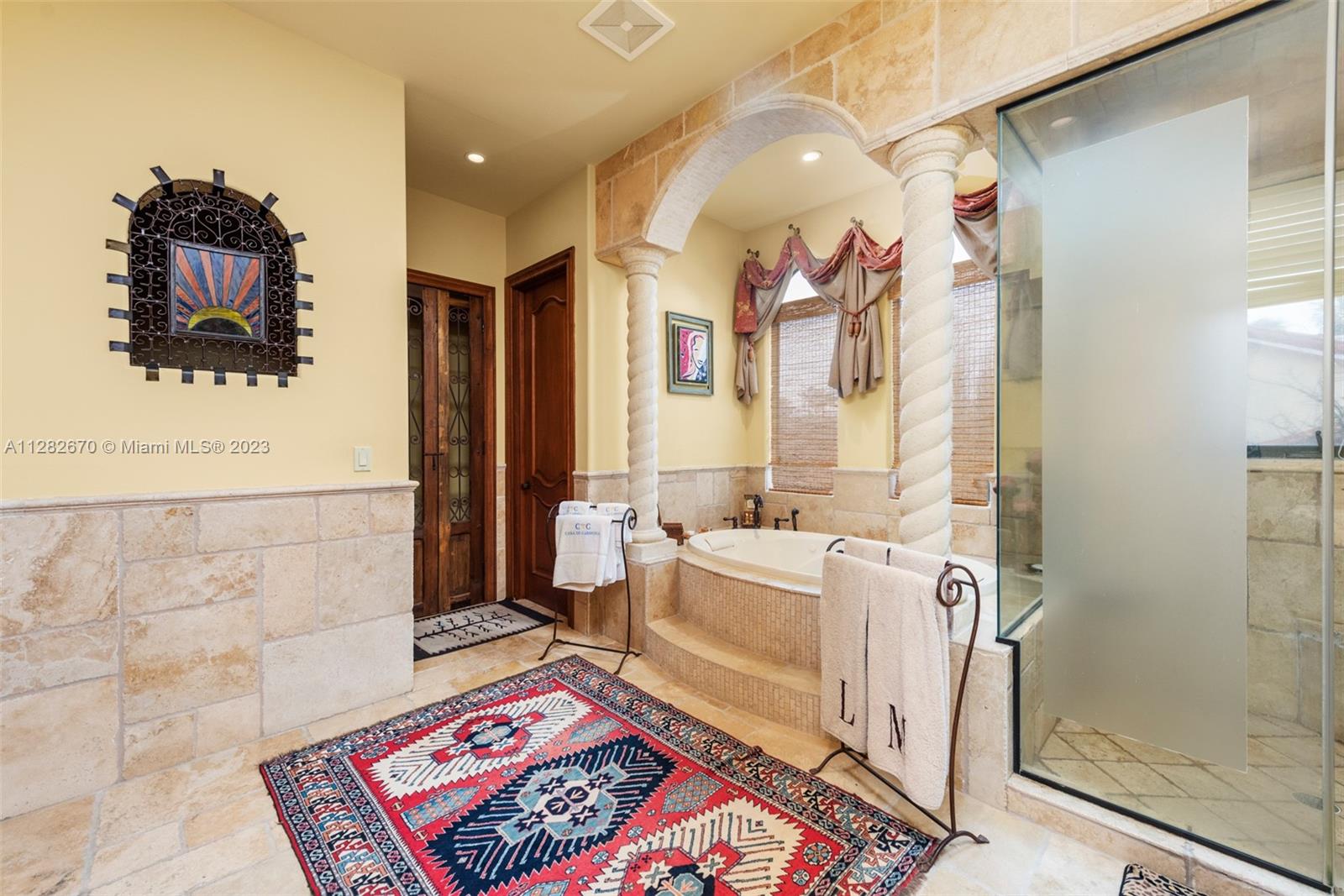 Beautifully custom built 6,376/sf Spanish Hacienda masterpiece! Sits on an oversized 15,000sf lot in the exclusive Town of Golden Beach, one of the most sought after communities in South Florida. The home is located within steps of the towns very own private beach. Courtyard entry, 24ft ceilings as you enter the home. Home features an oversized kitchen with a huge island, high-end appliances, thermador, Sub-Zero refrigerator, and granite countertops. The family room overlooks the large terrace & custom saltwater pool. Other features include office/den, playroom with built-in wet bar plus two ground floor bedrooms with in-suite bathrooms. Enormous master suite with a massive walk-in closet with built-ins, covered balcony, spectacular master bath with tub & shower with travertine finishes.