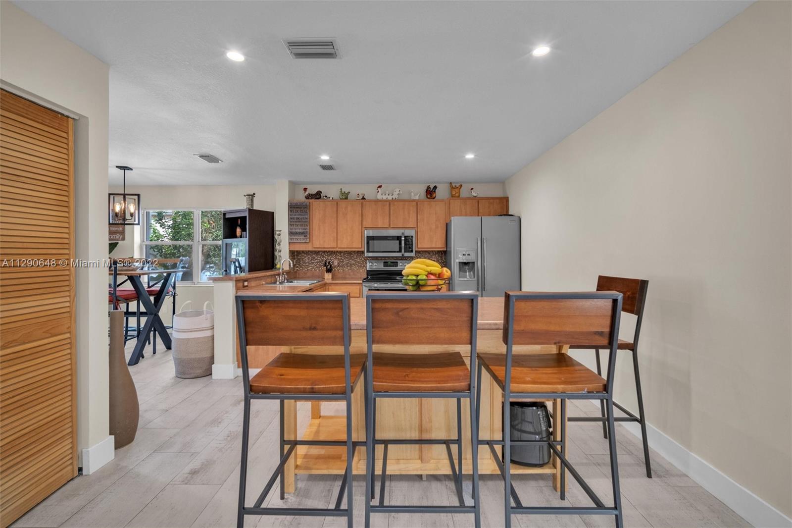 BACK ON MARKET! Previous buyers financing fell through. HAPPY ENERGY FAMILY HOME ready for its new owners. Home is equipped with a GE FULL HOUSE GENERATOR and complete accordion shutters. New modern ceramic tile floors throughout ground level and WATERPROOF wood-vinyl floors upstairs. Stainless steel kitchen appliances with huge mobile island and lots of space in the breakfast area to use as a second dining area, office, or playroom! All bathrooms have updated vanities and main bathroom has a fully remodeled shower. Flat tile roof age 2011 and A/C is 2010 (perfect condition.) Serene backyard remodeled with travertine floors and turf grass. The huge propane tanks in backyard are to serve the full house generator with enough propane to run the home for 3 weeks!
