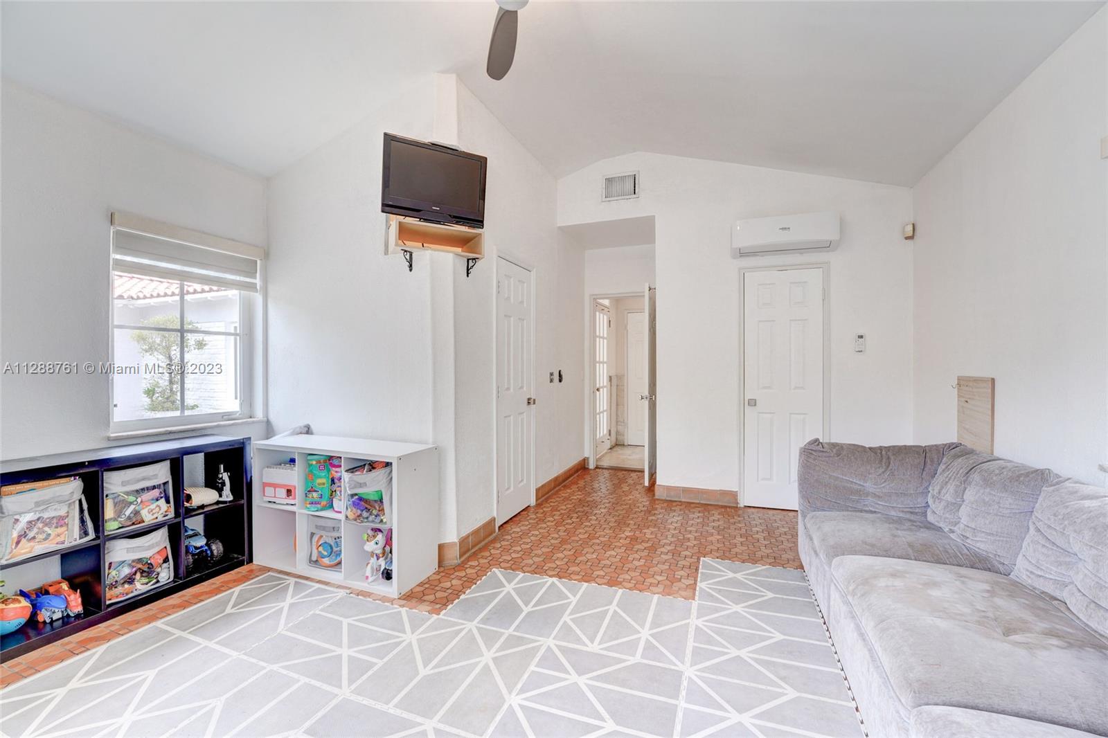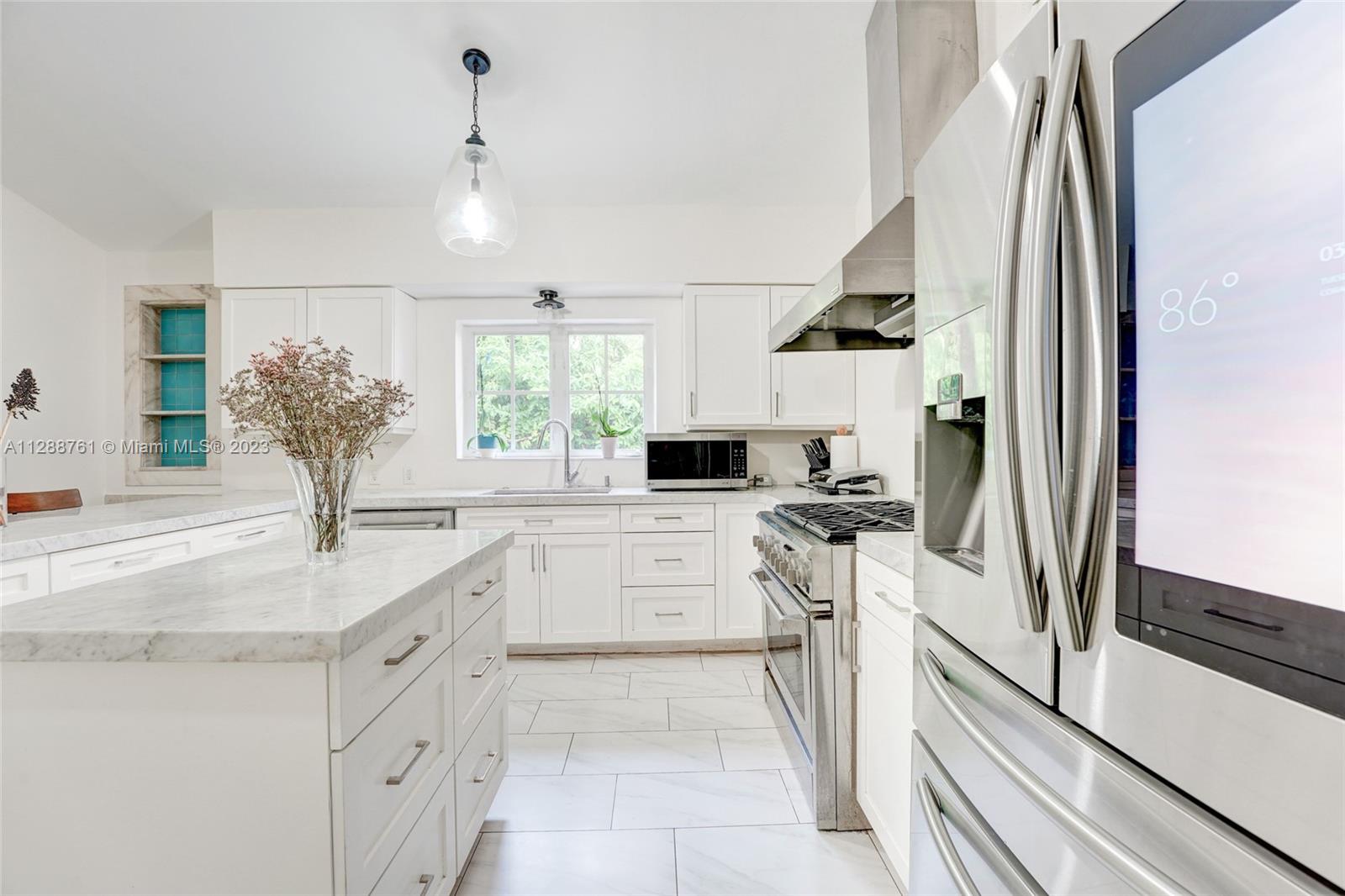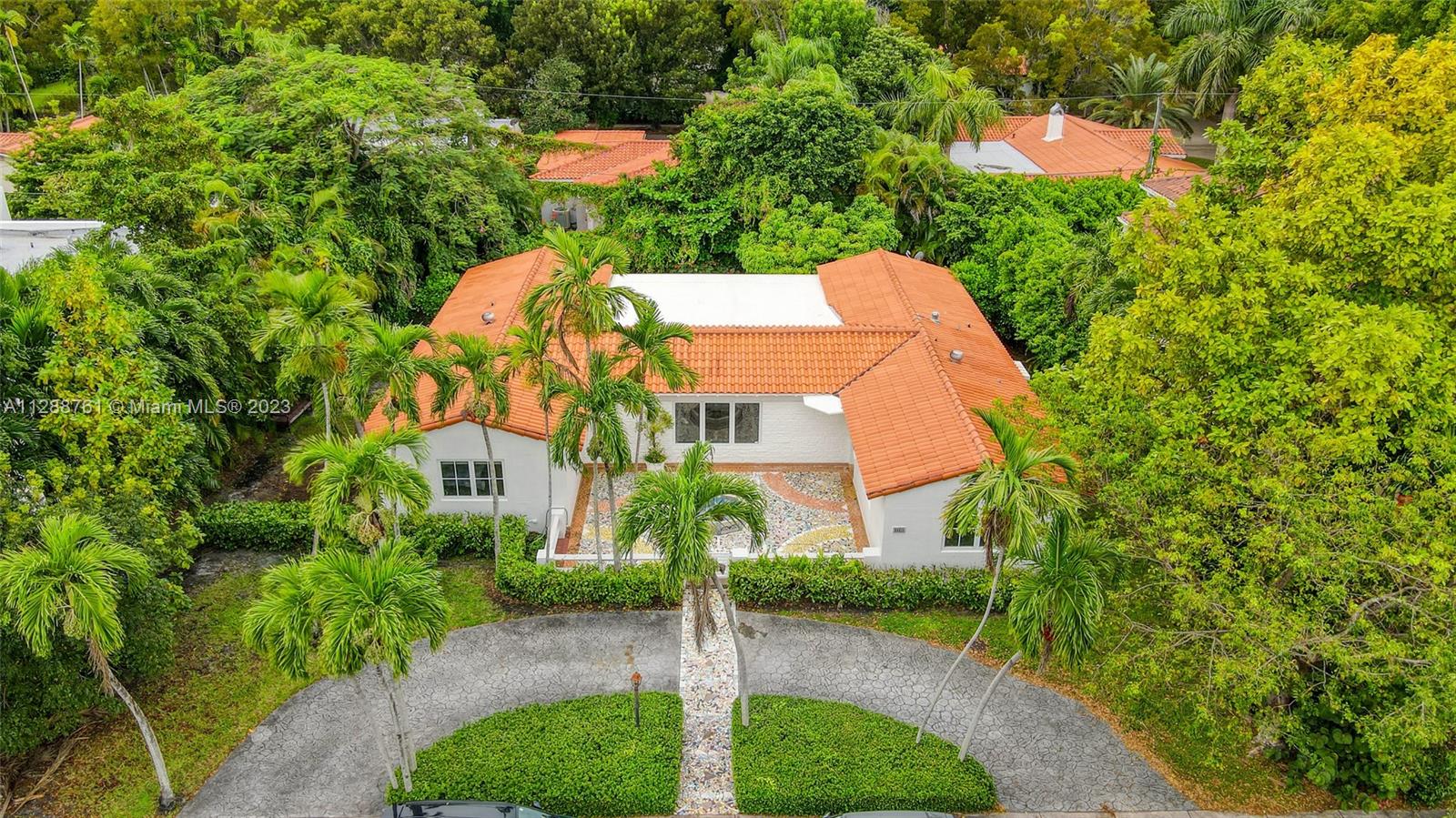 Spacious one-story Coral Gables home with 2,662 sqft of living space, set on a 10,700 sqft lot ($524 per SqFt). Located on a tranquil street with no through traffic. A welcoming courtyard leads you into an open living room with a vaulted ceiling. The family/dining room overlooks the covered terrace and garden. Eat-in kitchen features a gas range and built-in wine fridge. Split plan layout with very large bedrooms. A bonus room besides the kitchen works perfectly as an office/playroom. The home also features impact windows and doors throughout, separate laundry/utility room, tankless water heater, zebra blinds, spacious back and side yard, marble flooring and more. Fantastic location near downtown Coral Gables.
