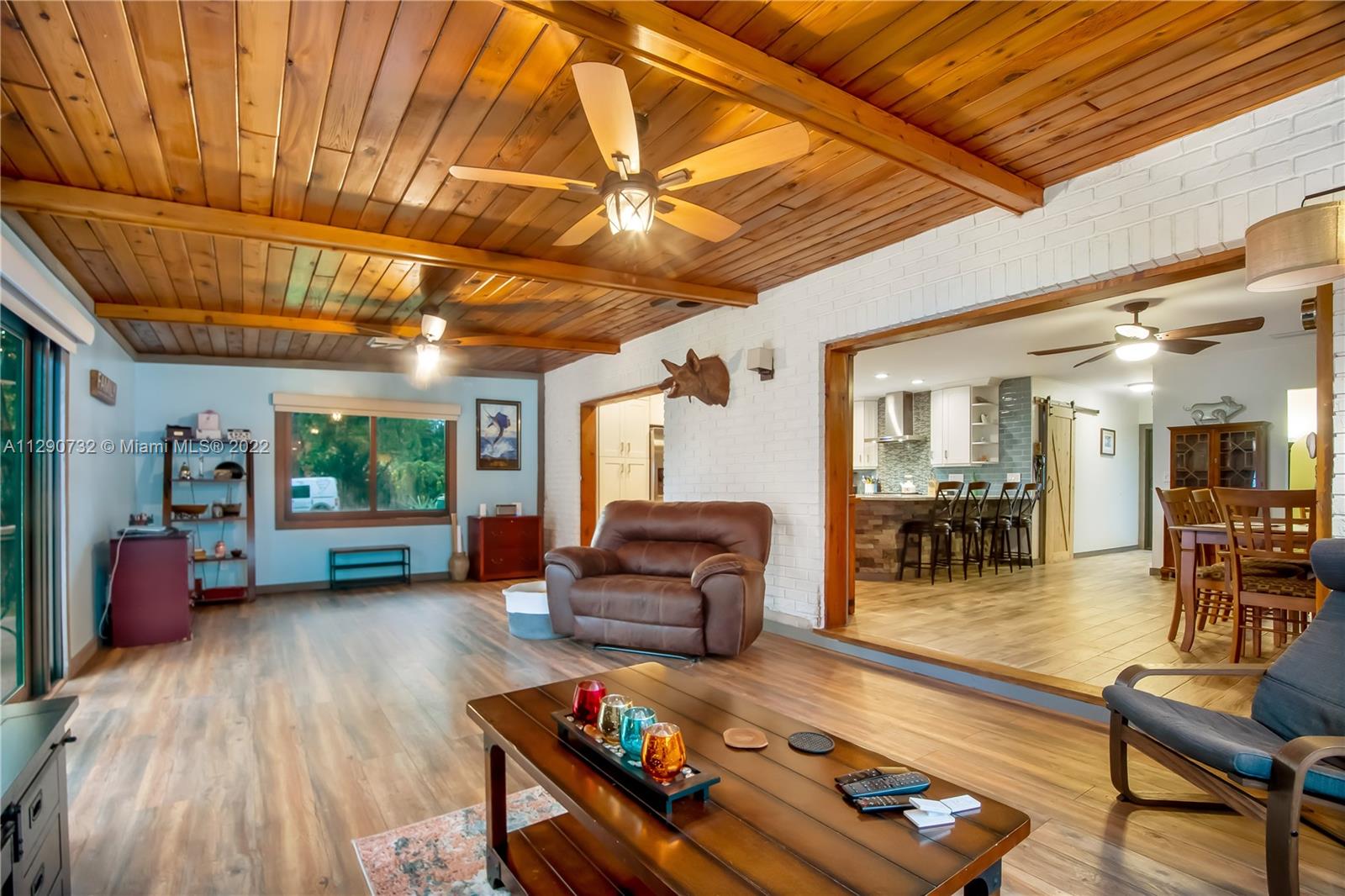 Charming country-style home nestled on a quiet, dead end road in Davie awaits you. Upon entry you will be welcomed by a spacious open-floor plan ideal for family gatherings and or cozy nights. This property features a 35'x50' insulated workshop with 14' ceilings which is Dade County hurricane rated with its own 200 amp service. Complete interior and exterior LED lighting and 2 oversized garage doors with motorized bug shields controlled with remotes or wall mounted key pad. Conveniently located near 150 acre preserve, equestrian trails, and Vista View Park. Minutes away from major highways, A+ schools, shops, and restaurants.
