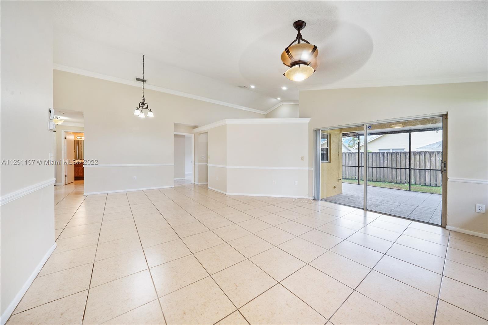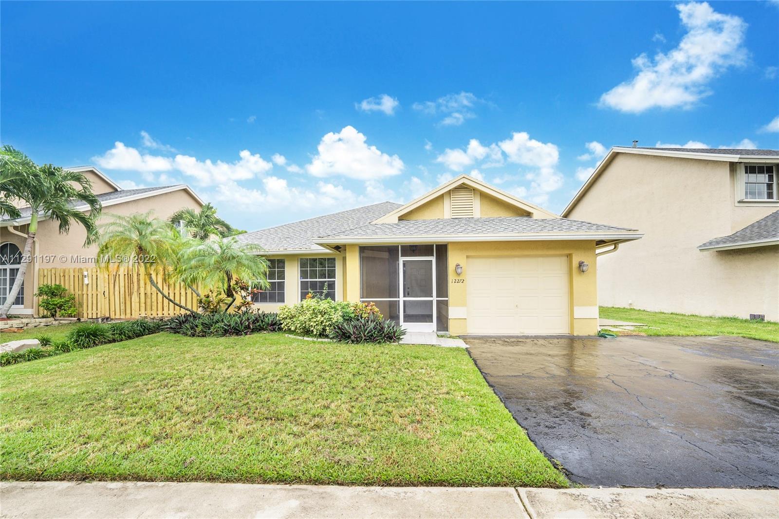 Updated 3/2 home with 1 car garage and wide driveway for up to 3 cars. Vaulted ceilings and tile throughout make this home feel large and open. Huge master bedroom with a large walk-in closet. The kitchen has been updated and has an eat-in breakfast area and gas range. Updated master bathroom featuring an enormous master shower. The spacious screened-in patio is great for entertaining. Community amenities include a pool and playground. This home is located in a great location - only a few blocks to the Sawgrass Expressway, Sawgrass Mall, Flamingo Linear Park, and FLA Live Arena. Listing agent is owner.