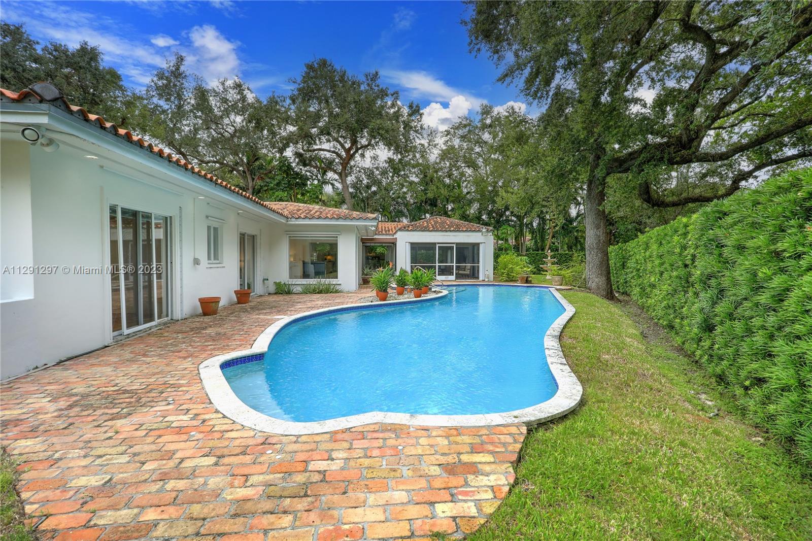 Located in the heart of Coral Gables, near Riviera Country Club, Merrick Park, & more, find this spacious 4,238 SF home on a magnificent 18,500 SF corner lot. The 4 BR, 3.5 BA, split plan home features gracious entertaining spaces including large formal living and dining rooms & wonderful family room that opens to the screened patio adjacent to the sparkling pool. The vast kitchen features timeless & beautiful wood cabinetry, high-end appliances including a gas range & 2 ovens, & 2 eat-in areas. The primary suite has 3 closets & a lovely bathroom w/ separate shower & tub w/ beautiful views of the lawn from windows on 2 sides. Other features: 2+ car garage, laundry room, marble & wood floors, plantation shutters, & accordion & panel hurricane shutters. Make this fabulous home your own!