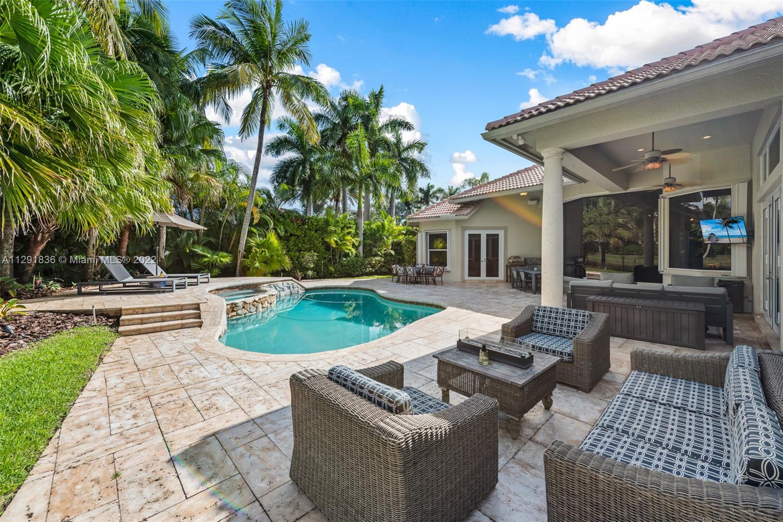 Corner Waterfront Property located in the coveted community of The Landings in Weston. 23,174 sq.ft. lot the property offers sweeping water views. Recently remodeled the living spaces seamlessly connect to the thoughtfully conceived lush outdoor areas including the covered terrace and heated saltwater pool/spa with plenty of space for lounging in the sun. The home features 4BR/4.5BA+Custom Office/Library, Large Den, Formal Dining room & 3-car garage. Entertainer’s kitchen, volume coffered ceilings, wet bar, wood burning fireplace and light filled interior are among the many modern conveniences to be enjoyed and perfect for the discerning Buyer.