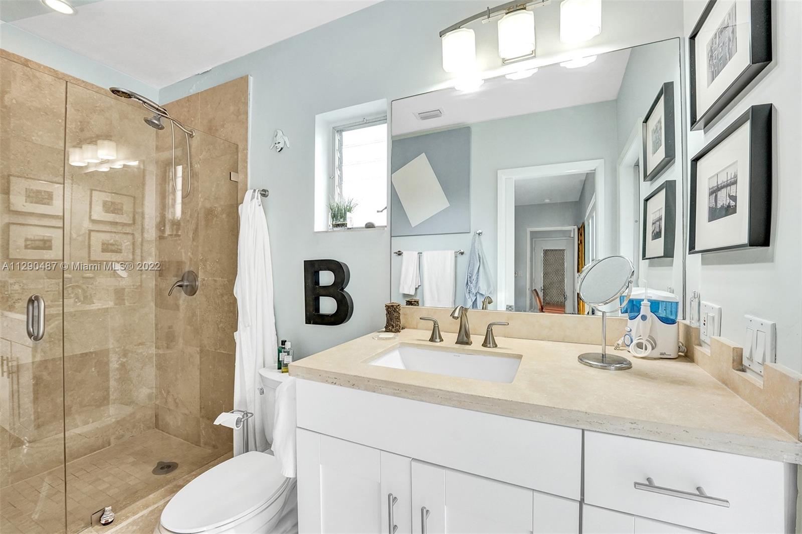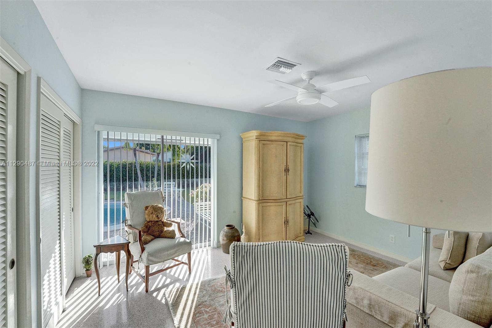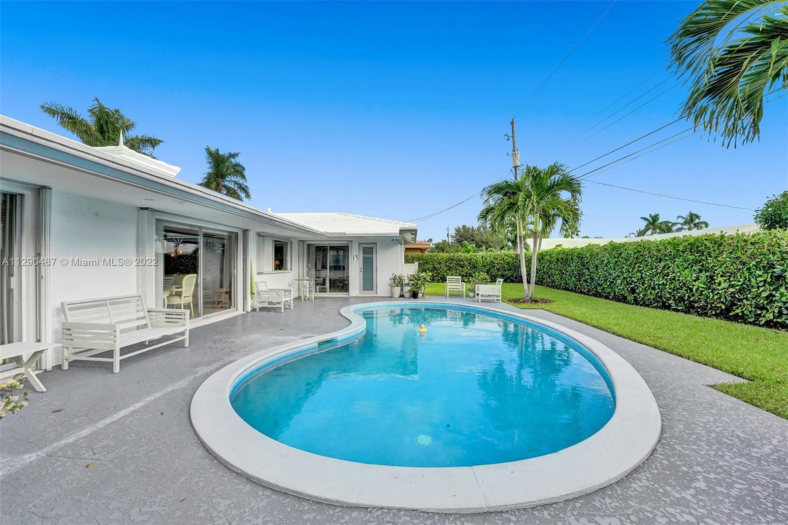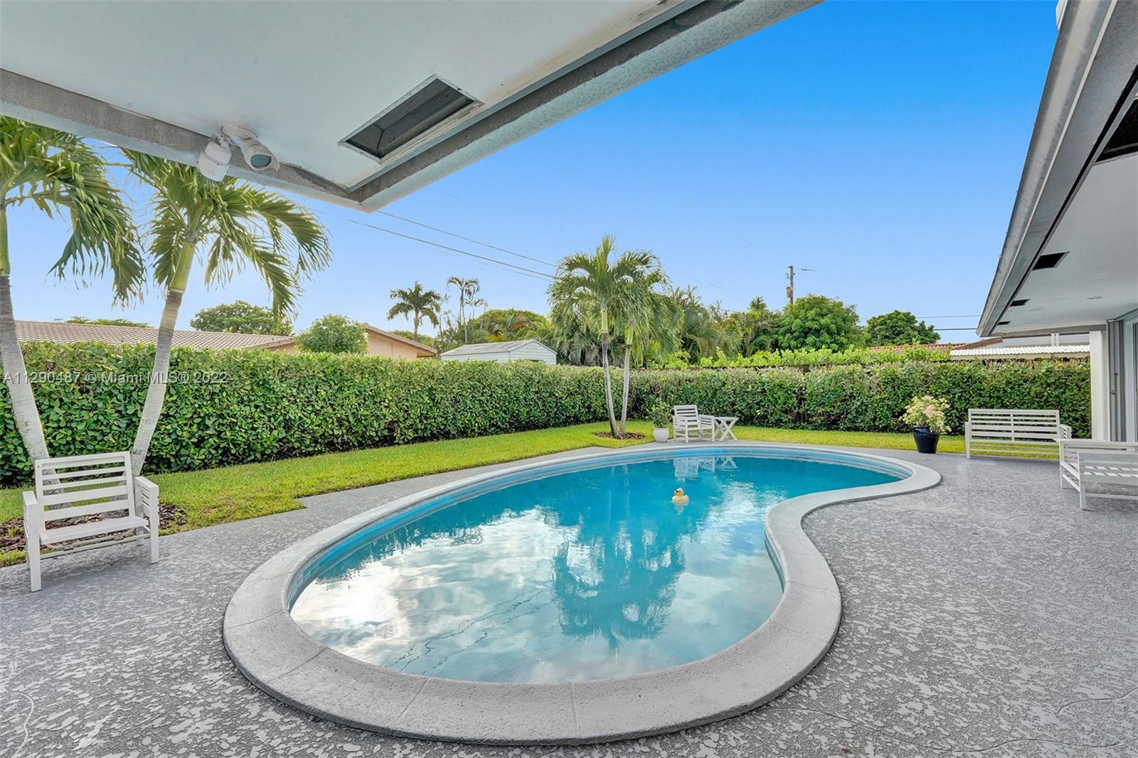 Immaculate 3/2 pool home in move-in condition. Many recent upgrades including white kitchen, SS appliances, granite counter, marble bathroom, glass shower, original gleaming Terrazzo floor, open floor plan w/pool garden view, private master wing with access to pool, walk in closet, guest wing w/private bath, pool access, double closets. Paved circular driveway, sprinklers, professional landscaping ,hurricane shutters, 2 car garage, laundry room, utility room and much more...