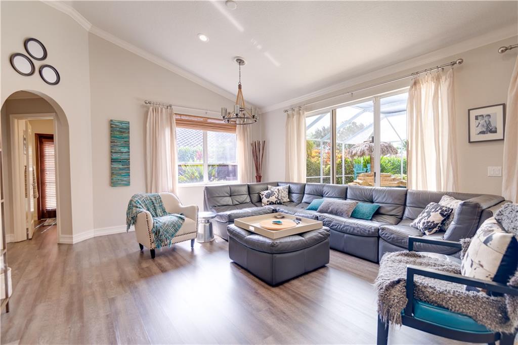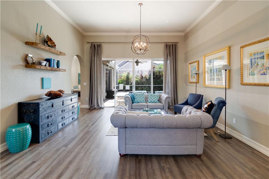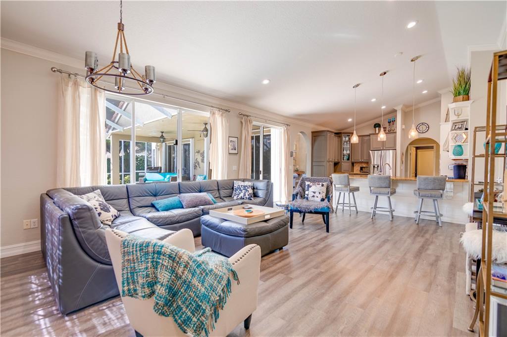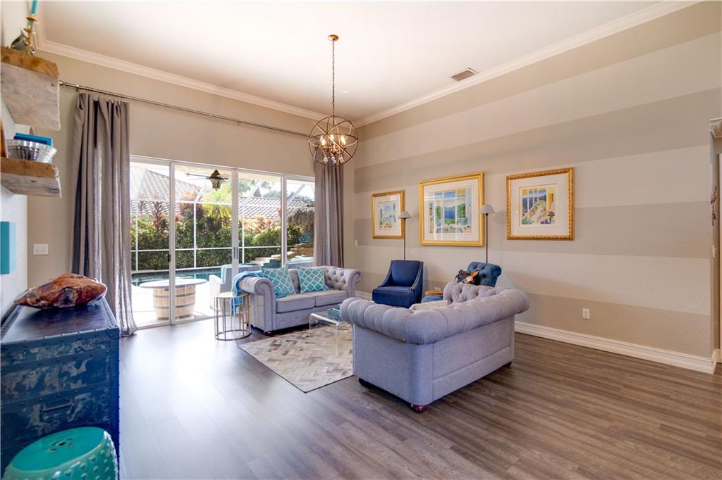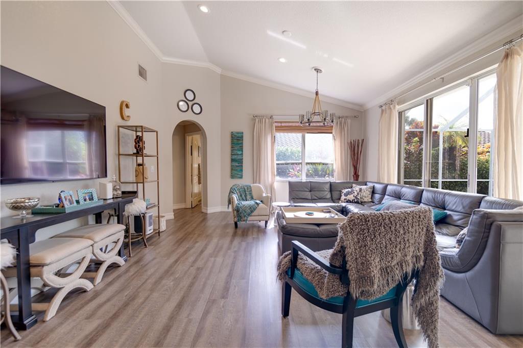 Whittier Oaks spacious 5 bedroom, 3 bath pool home. Home shows like a model! Upgrades include a remodeled kitchen with wood cabinets, granite countertops, upgraded stainless steel appliances and a wine refrigerator. Neutral wood like floors throughout the home, large master suite with updated master bathroom. Private triple split floor plan. Step outside and enjoy the resort style solar heated pool with waterfall. Home also has accordion hurricane shutters around the home. Large fenced backyard with lush landscaping. Newer AC, hybrid water heater and more. Low monthly HOA fee includes lawn care. Quiet man gated community that is walking distance to Terramar Park, Shops and Restaurants.