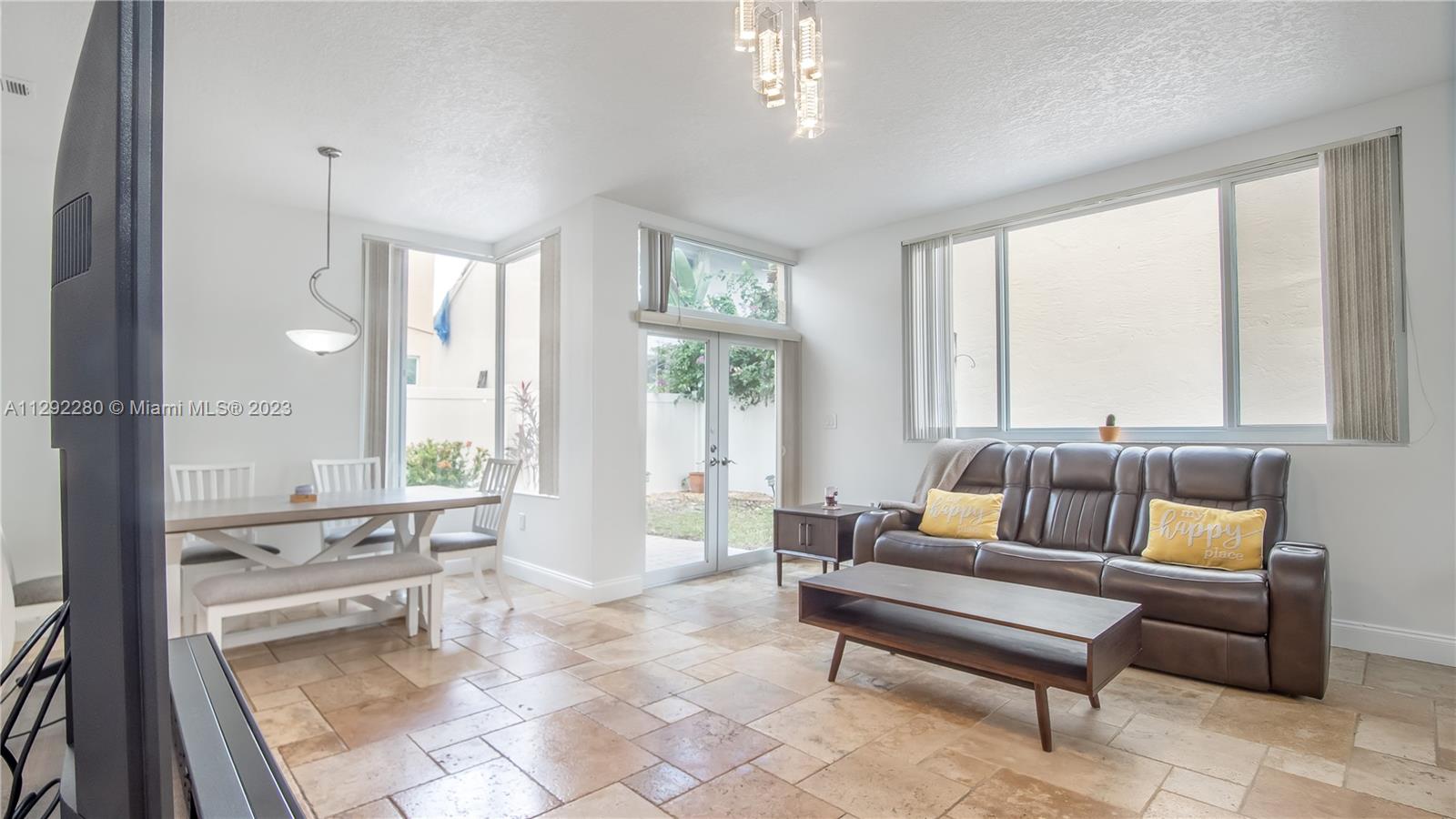 Light & bright home in L'etoile at Emerald Pointe! Open kitchen w/real wood cabinets, SS appliances, granite countertops. Travertine floors recently sealed & wood floors upstairs. BIG PLUSES Roof done in 2018, some impact windows & doors plus accordion shutters. New lighting, new water heater in 2019. Enjoy the sunrise or afternoon snack from balcony patio. French doors to private backyard & BBQ area featuring upgraded vinyl fence & combination pavers & grass areas, perfect to entertain! Upstairs laundry. Lg master bedroom boasting travertine tile in bathroom & roman tub. BIG PLUS Low maintenance! Includes cable, security guard, pool overlooking lake, tot-lot & GYM. Fab location close to TY Park, places of worship, Dania Pointe shops & dining, Hollywood Beach, I-95, Hard Rock Cafe & more!