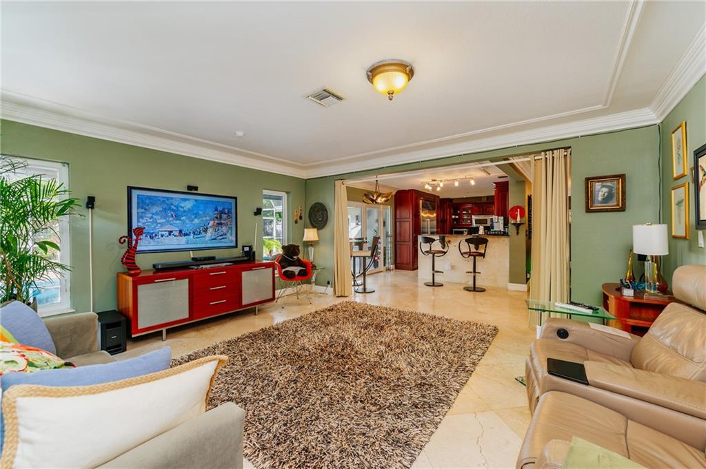 Welcome home to a Quiet Oasis in Coral Ridge CC. Expansive 3299 Sq. Ft. under air, plus 2 car garage. Graciously appointed, marble flooring throughout and bold layered crown moldings. Grand Owner’s Suite boasts enormous closet and Spa style Bath. Triple Split plan with Teen/In-Law suite featuring a sitting room with fireplace. Large family room could easily become another suite with existing full bath. Viking Range & Microwave, Sub Zero Refrigerator in large kitchen designed for entertaining. French doors lead to the screened pool from main house and rear suite. Tile roof done 2013, Fence 2014. Impact Garage Door 2015 and Impact Entry Doors in 2016. Under 1 mile to the beach, Close proximity to surrounding Fine Dining. ---Perfect for Short Term Rental - could host 12 - 14 guests!