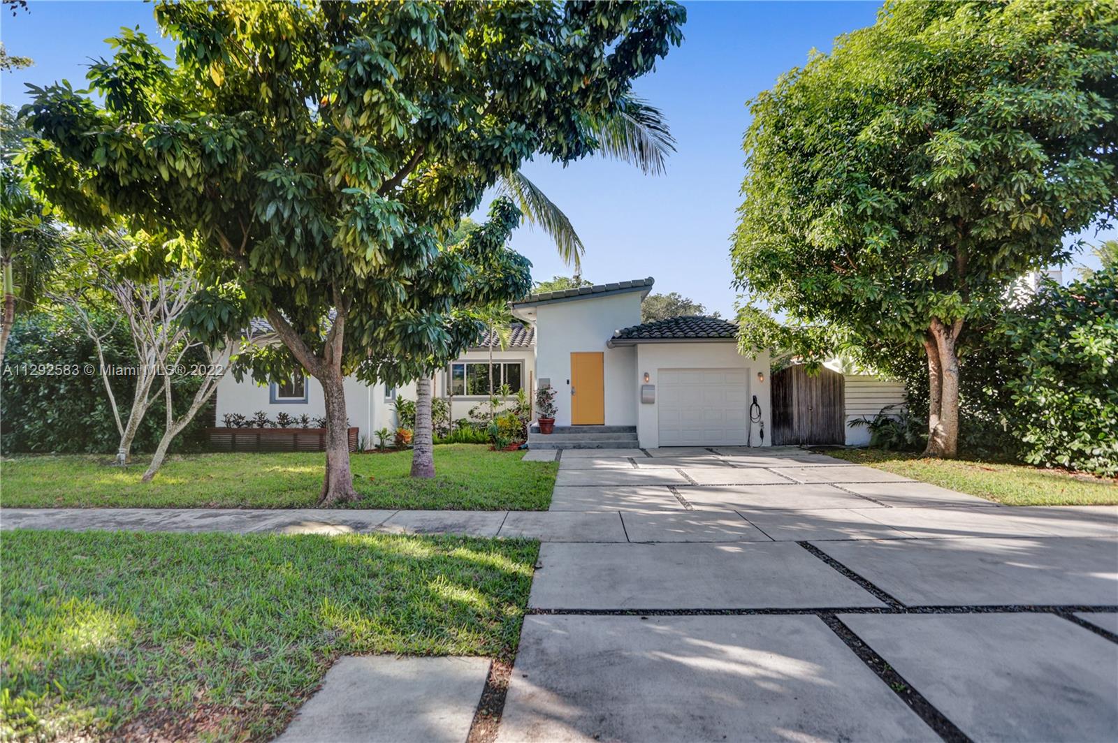Spectacularly renovated home in the exclusive Miami Shores Village. Open concept modern luxury on an oversized 9,209 SF lot with 3 Bedrooms, 2 bathrooms, 1,783 SF. Radiant home is the epitome of indoor-outdoor living with natural light pouring in and gorgeous views of the lushly landscaped backyard oasis with mature avocado & mango trees. Interior features, impact windows & doors, bamboo floor, fireplace, recessed LED lighting, BRAND NEW bathrooms, stunning primary bath w/marble shower. Kitchen boasts dazzling quartz waterfall countertop, professional & elite series appliances, wine refrigerator, built-in dishwasher. New roof in 2017, garage with stacked washer & dryer, buried power lines. Nestled on a quiet, tree-lined cul-de-sac this is an ABSOLUTE MUST SEE!