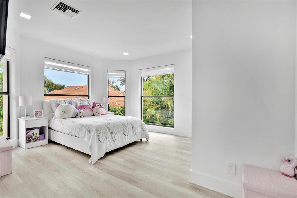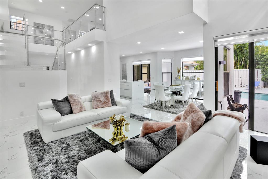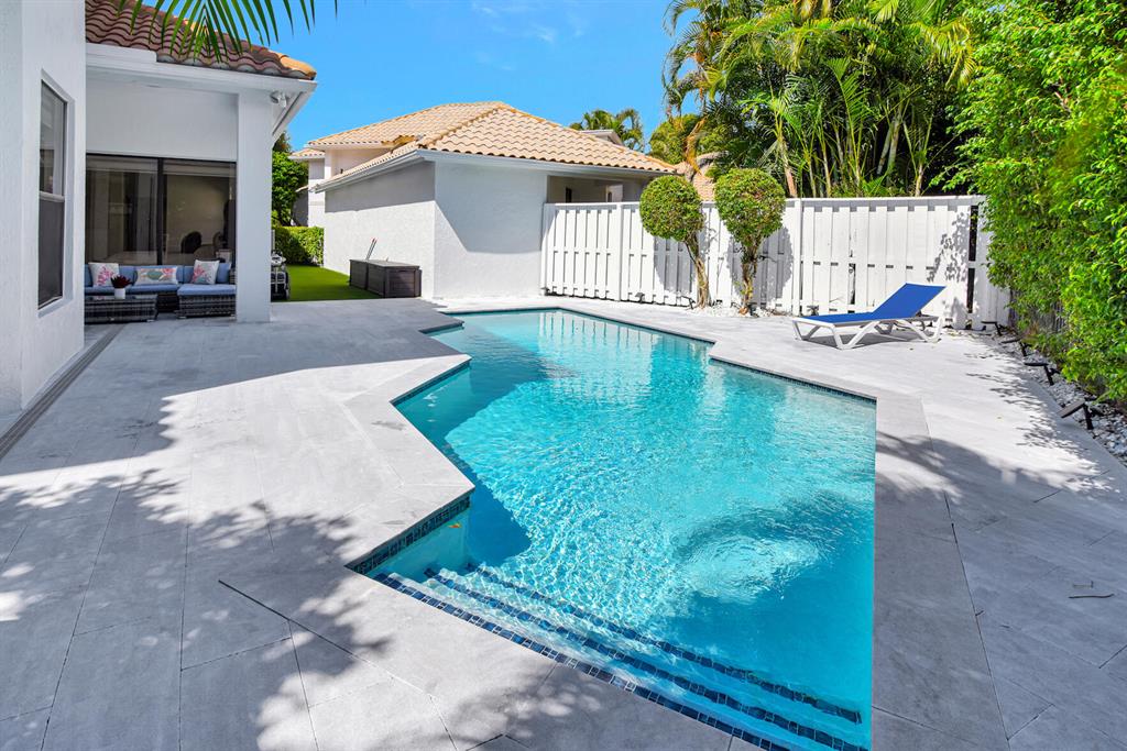 WOW! What a spectacular home. This contemporary, just completed remodeled home is located in the award winning country club at Broken Sound. Master bedroom down with a fabulous spa like bathroom, cozy family room with an electric fireplace, large modern kitchen with quartz countertops and all the bells and whistles. The gorgeous glass staircase, leads up to 2 bedrooms with a tremendous loft area. The living room is open to the dining area and kitchen overlooking the beautiful remodeled pool, deck area with marble paver , and a built in outdoor summer kitchen. This is one home not to be missed, it won't last long!